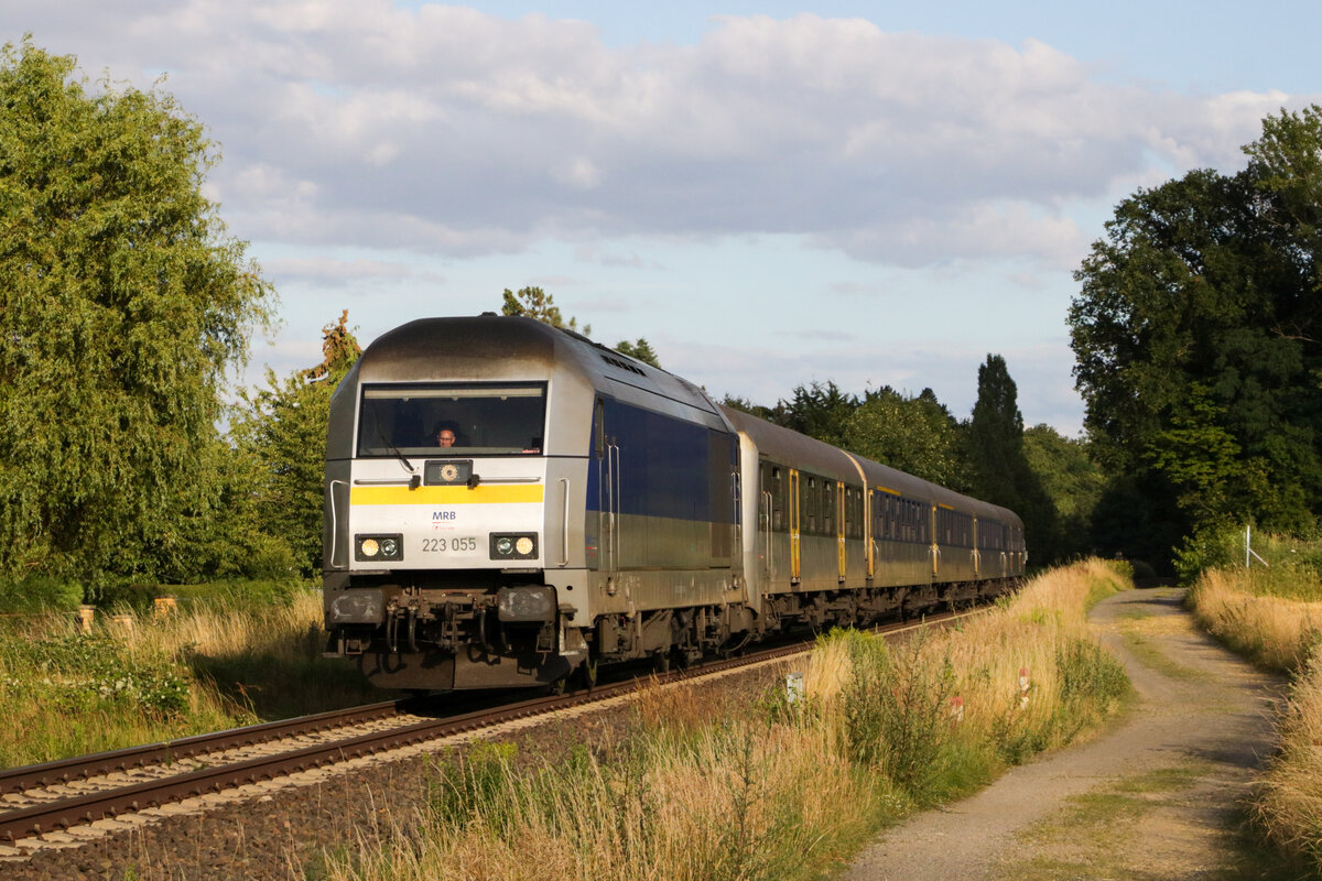 Der Regionalexpress 6 war ein Jahrzehnt lang mit Wagen der deutschen Reichsbahn bespannt. Zum bedauern sehr vieler Eisenbahnfans wurde dieser legendäre Wagenpark Ende 2024 bei TDRO außer Dienst genommen. Am 09.11.2024 fährt 223 054 auf Abschlussfahrt Roßwein entgegen und passiert gerade Döbeln-Zentrum im Morgennebel, um später das Ziel Nossen zu erreichen.