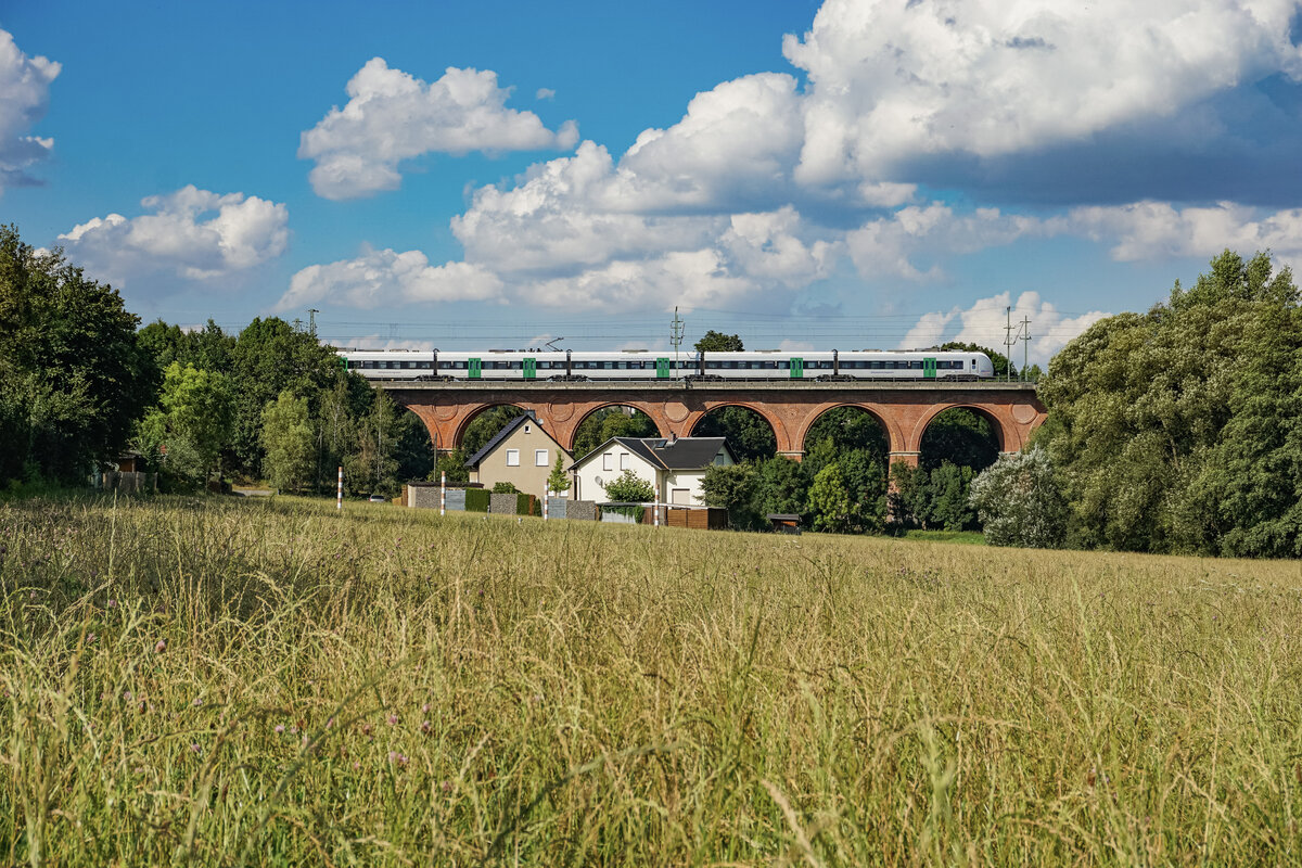 Am 15.08.2024 konnte ich einen MRB 1440 nach Dresden auf dem Römertalviadukt in Steinpleis fotografieren.