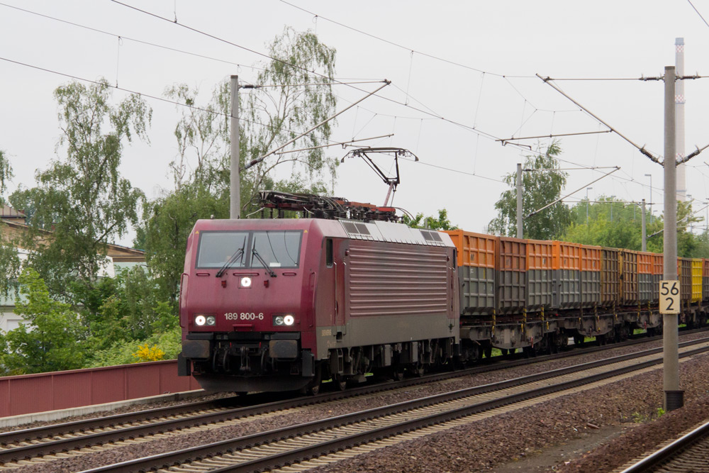 204 311-5 (202 311-7) & 204 347-9 (202 347-1) MTEG - Muldental Eisenbahnverkehrsgesellschaft mbH mit einem leeren Hackschnitzelzug, bei der Durchfahrt in Rathenow und fuhren in Richtung Wustermark weiter. 12.04.2014 Stephan Kemnitz