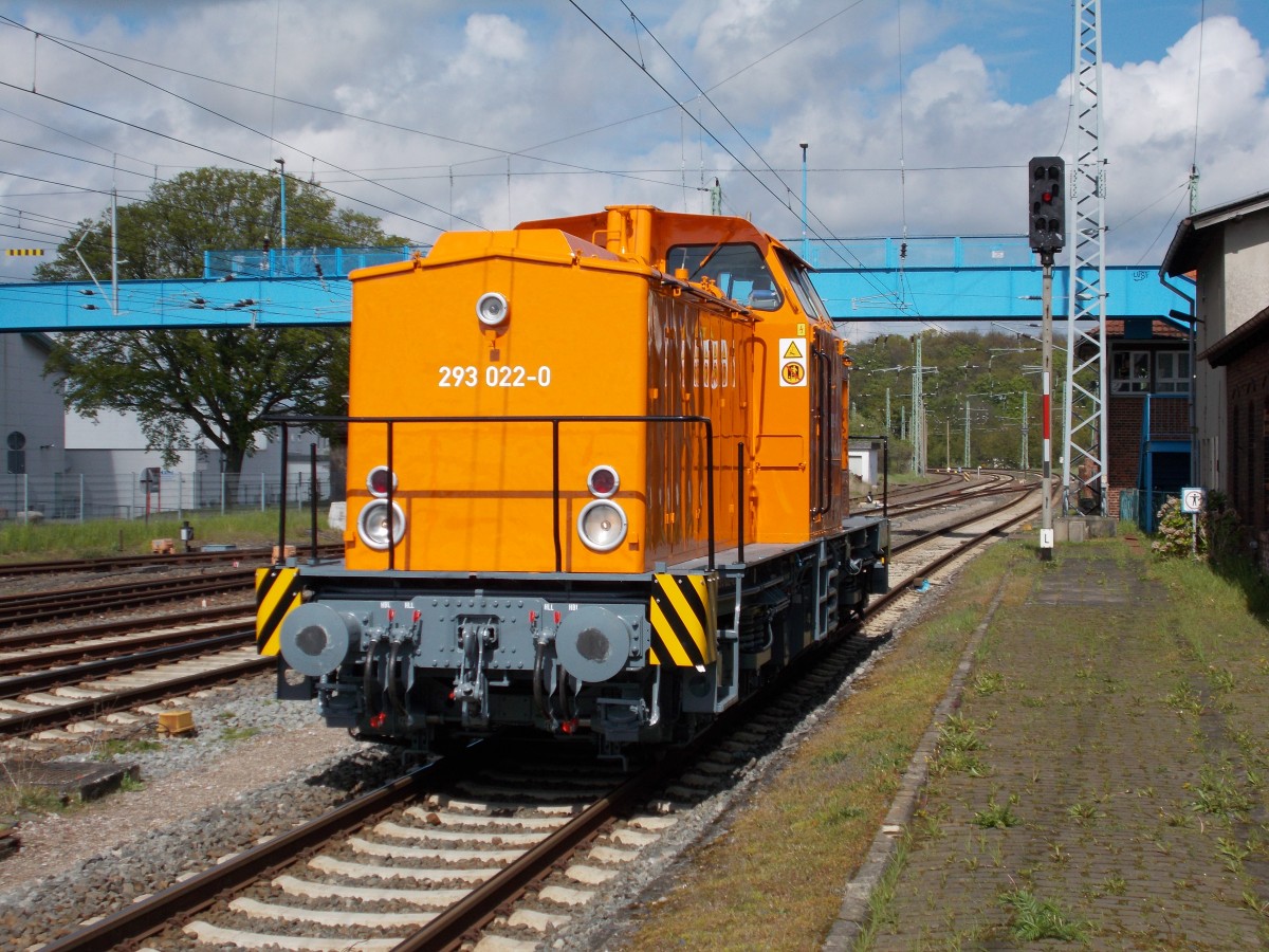 293 022-0 MTEG - Muldental Eisenbahnverkehrsgesellschaft mbH mit einem Res Ganzzug in Berlin-Schönefeld Flughafen und fuhr in Richtung Grünauer Kreuz weiter. 22.04.2014 Stephan Kemnitz