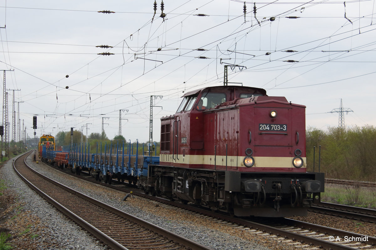 Die bei der MTEG als 204 425 geführte 203 220 stand am 20.11.16 in Bitterfeld auf dem Netz der RBB abgestellt. Das linke Gleis führt vom Bahnhof Bitterfeld in den dortigen Chemiepark. Martin Schneider