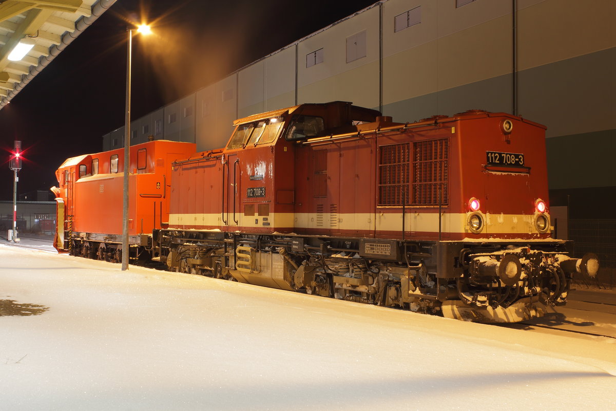 Schneepflug macht sich bereit für die Fahrt durch das verschneite Vogtland. Mit im DIenst die METG 112 708 Aufgenommen am 06.01.2017 in Adorf. Andreas Schreiber