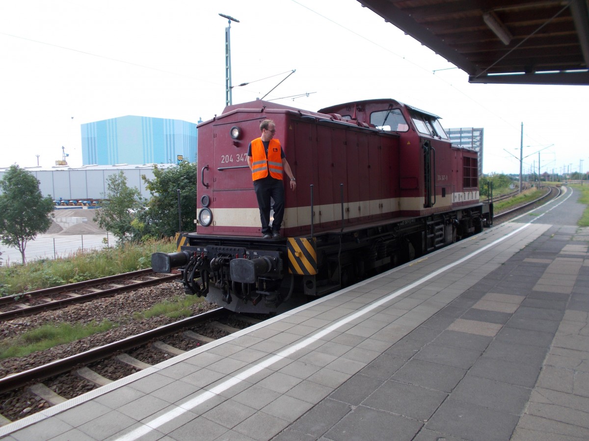 Die Wartezeit in Stralsund Rügendamm wurde,am 10.August 2014,zu einem Kontrollgang an der MTEG 204 347 genutzt.