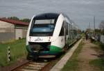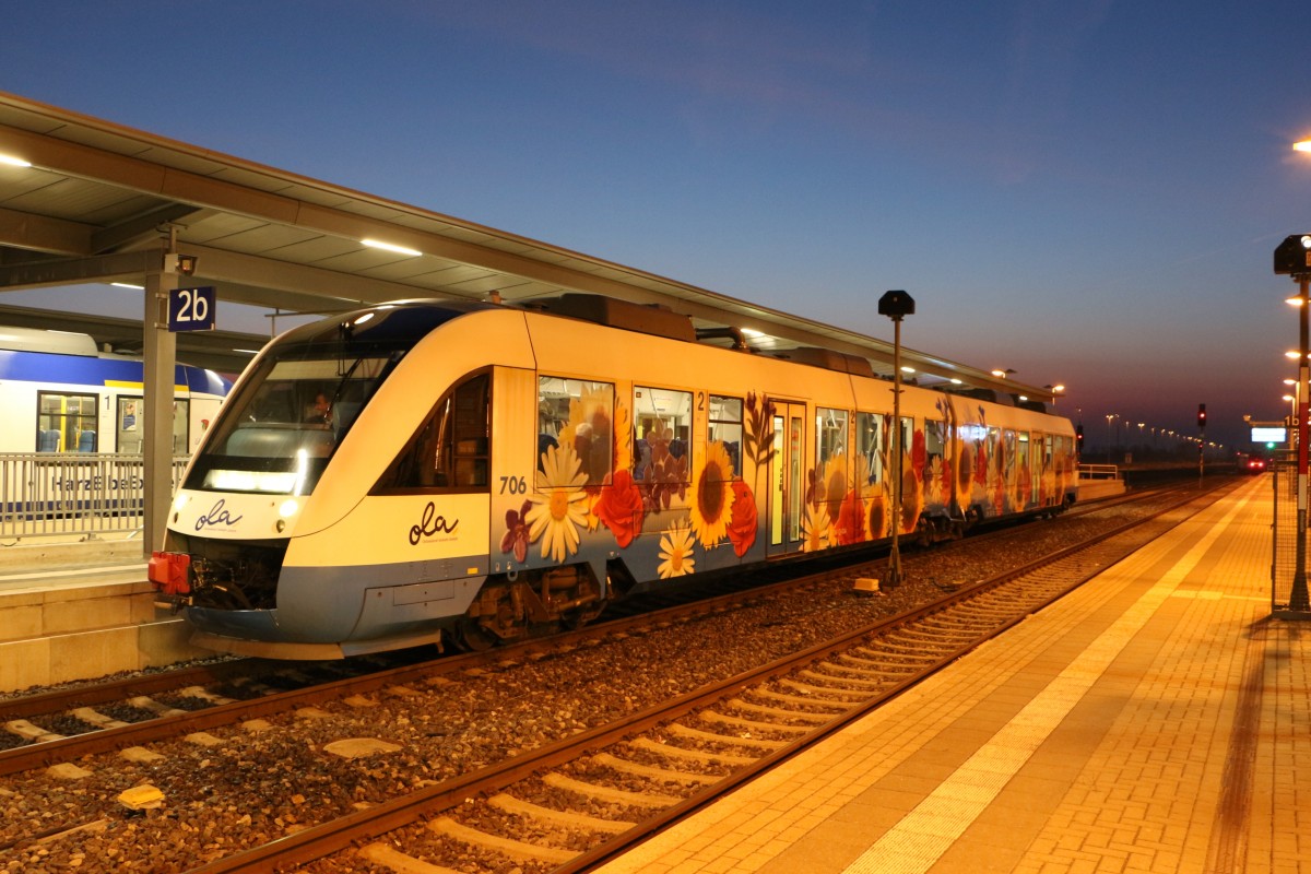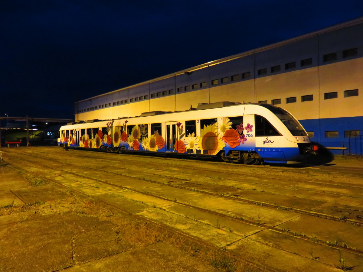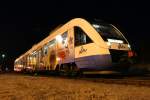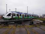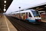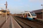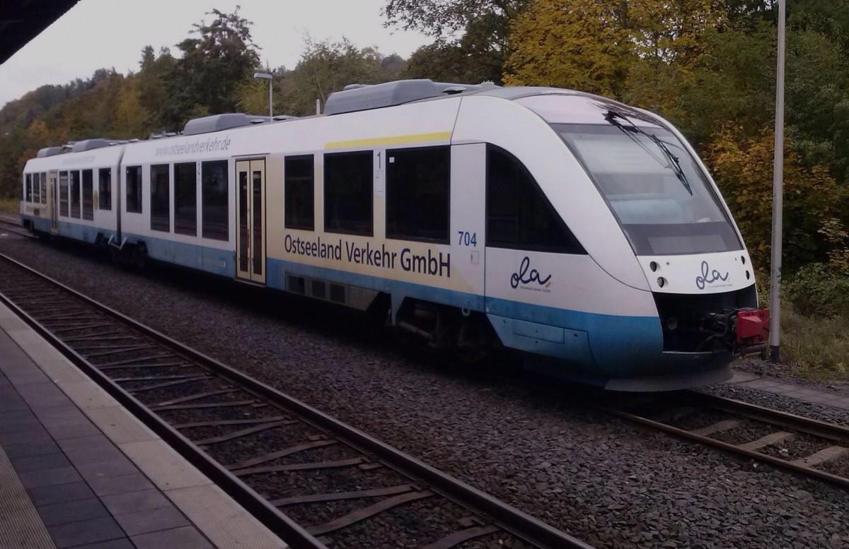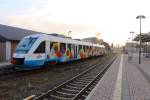 Der VT 704 war ehemals im Fuhrpark der Ostseeland Verkehr und wurde von der Hessischen Landesbahn geliehen. Das Fahrzeug wird zurzeit als Reserve eingesetzt. Als Besonderheit hat dieser LINT 41 ein Radio, das man im Fahrgastraum hören kann. Fotografiert am 17.10.2015 im Bahnhof Weilburg. Olaf Kelling