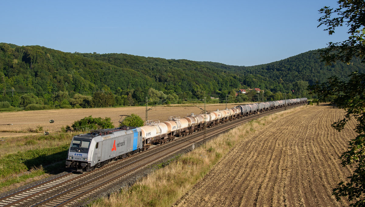 Retrack GmbH & Co. KG mit der Rpool "186 437-0" [NVR-Number: 91 80 6186 437-0 D-Rpool] und Kesselwagenzug (Propylenoxid) am 17.07.18 Bf. Flughafen Berlin-Schönefeld. Nette Grüße an den Tf. !!!! Lothar Stöckmann