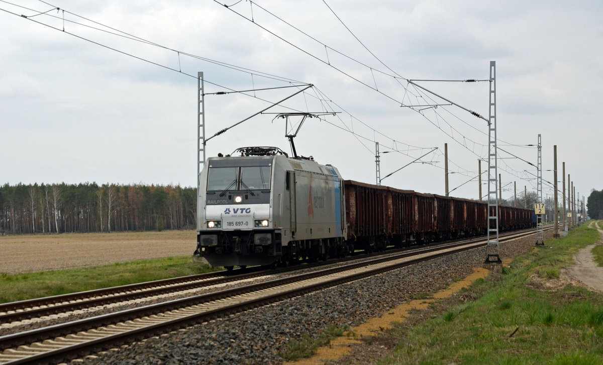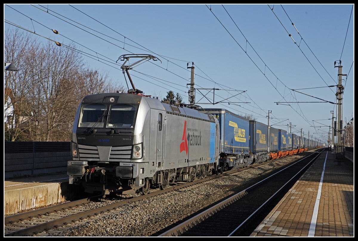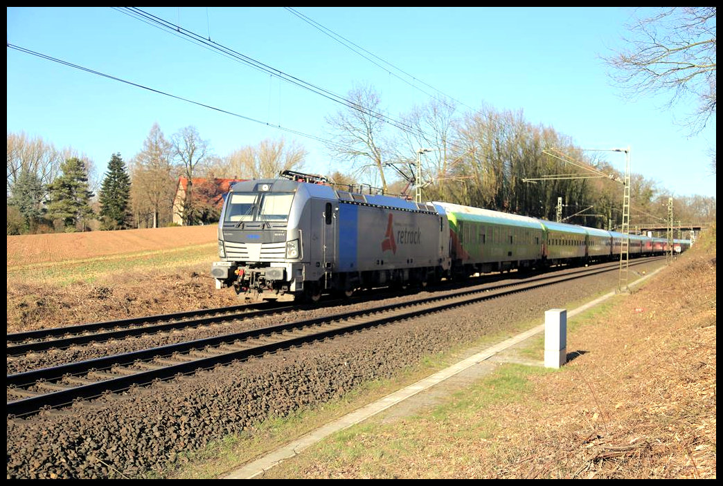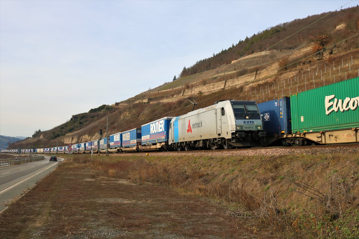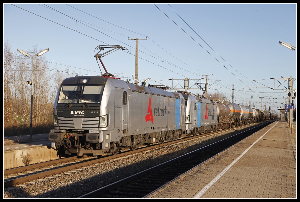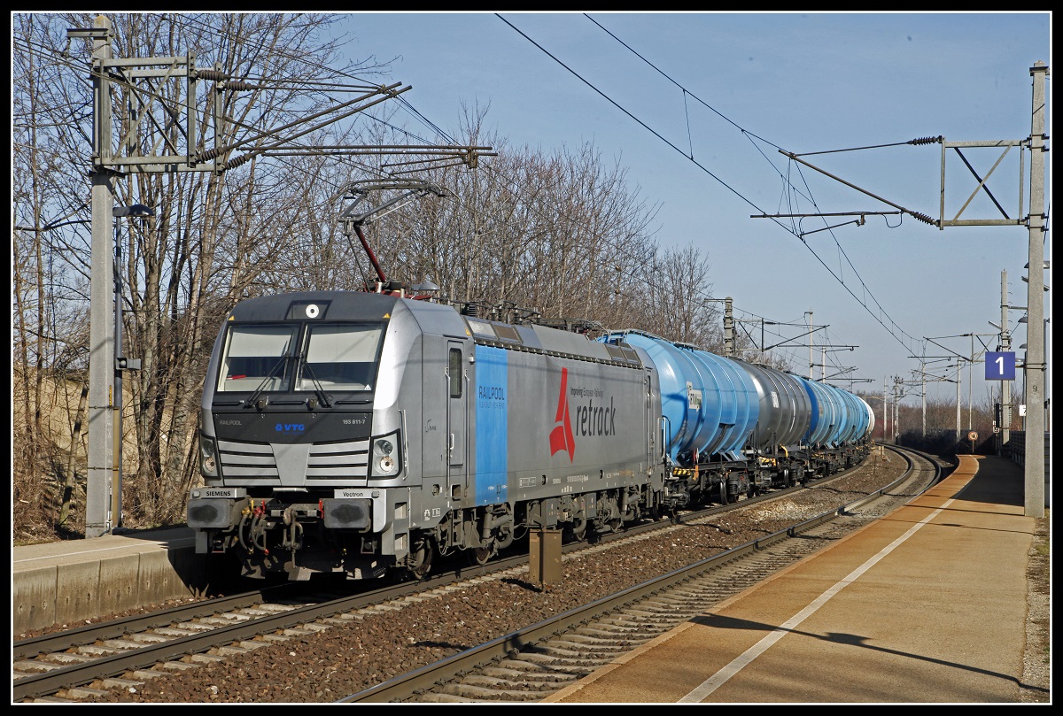 Retrack GmbH & Co. KG gehört zur Unternehmensgruppe von VTG, hier mit der Railpool Vectron 193 815[NVR-Number: 91 80 6193 815-8 D-Rpool[Name: Kätchen]] mit dem Containerzug mit den innofreight Spezialcontainern für Schüttgüter am 24.01.18 Bf. Flughafen Berlin-Schönefeld. Lothar Stöckmann