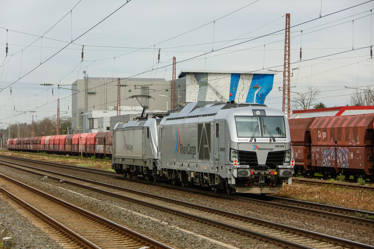 RheinCargo GmbH & Co. KG, Neuss [D] mit ihrer Vectron Dual Lok "248 058" [NVR-Nummer: 90 80 2248 058-0 D-RHC] und einem Kesselwagenzug am 26.04.24 Durchfahrt Bahnhof Berlin Hohenschönhausen. Lothar Stöckmann