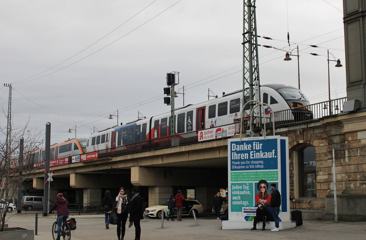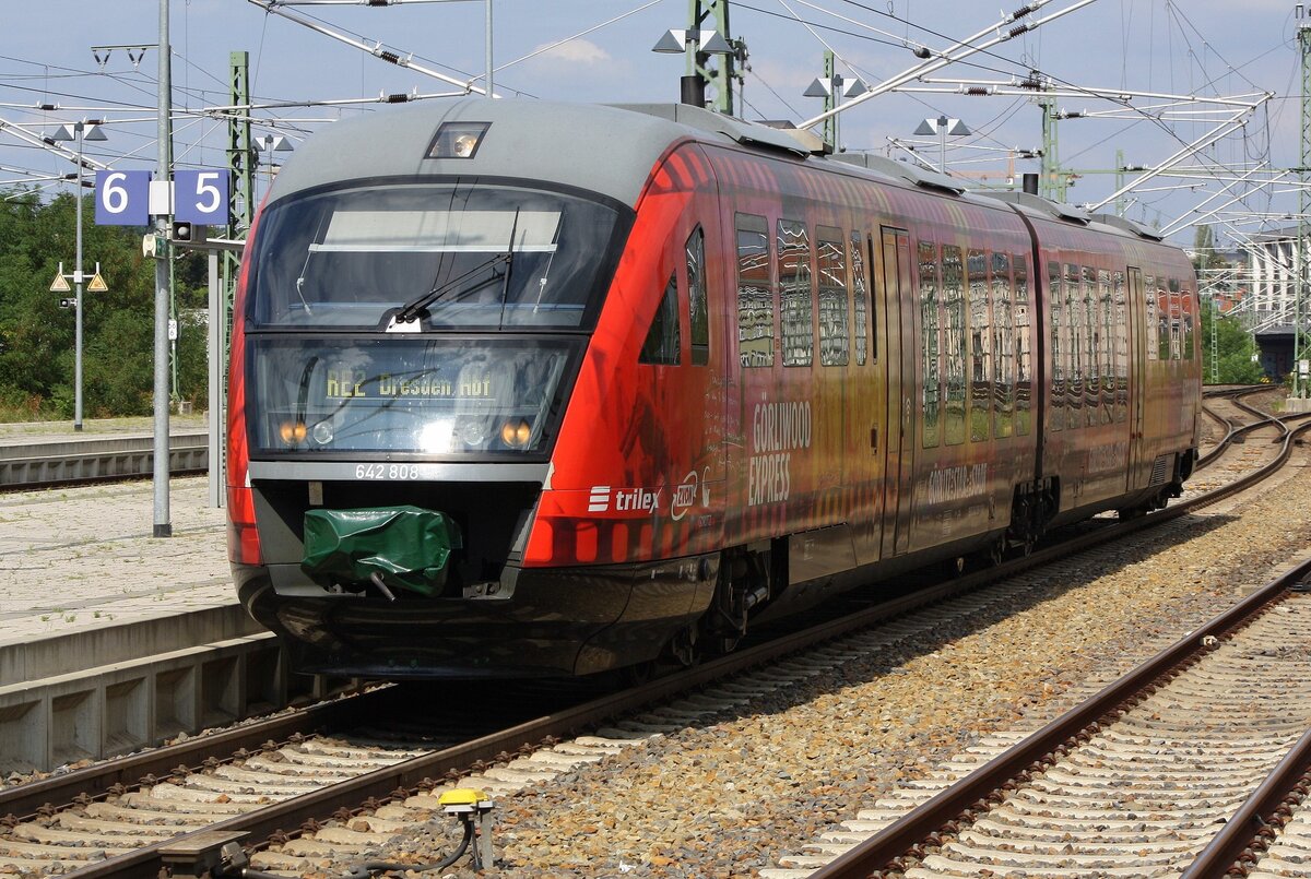Am Abend des 13.09.25 hat 642 304 zusammen mit seinem Bruder 642 302 des Trilex aus Zittau kommend sein Ziel Dresden Hbf erreicht und fährt nun als Rangierfahrt aus der Bahnhofshalle heraus. Martin Schneider