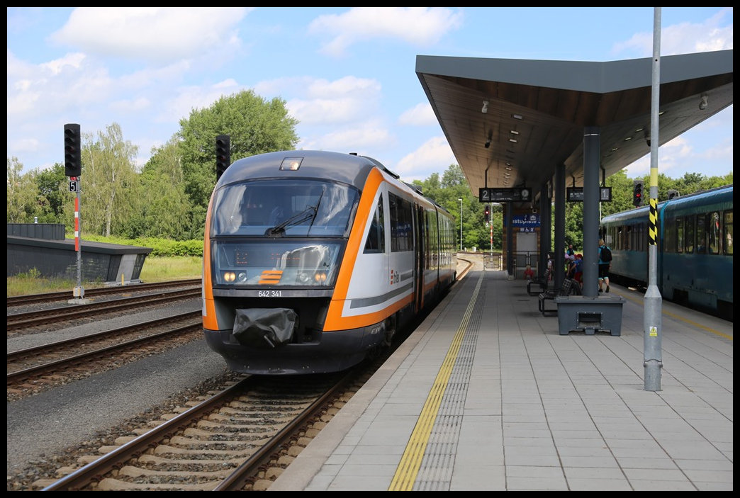 Zusammen mit seinen Brüdern 642 309 und 642 319 rollt 642 326 des Trilex am 30.09.25 als Rangierfahrt aus der Halle des Dresdner Hbf. Das Trio kam zuvor aus Zittau an und fuhr anschließend nach Görlitz. Gruß zurück! Martin Schneider