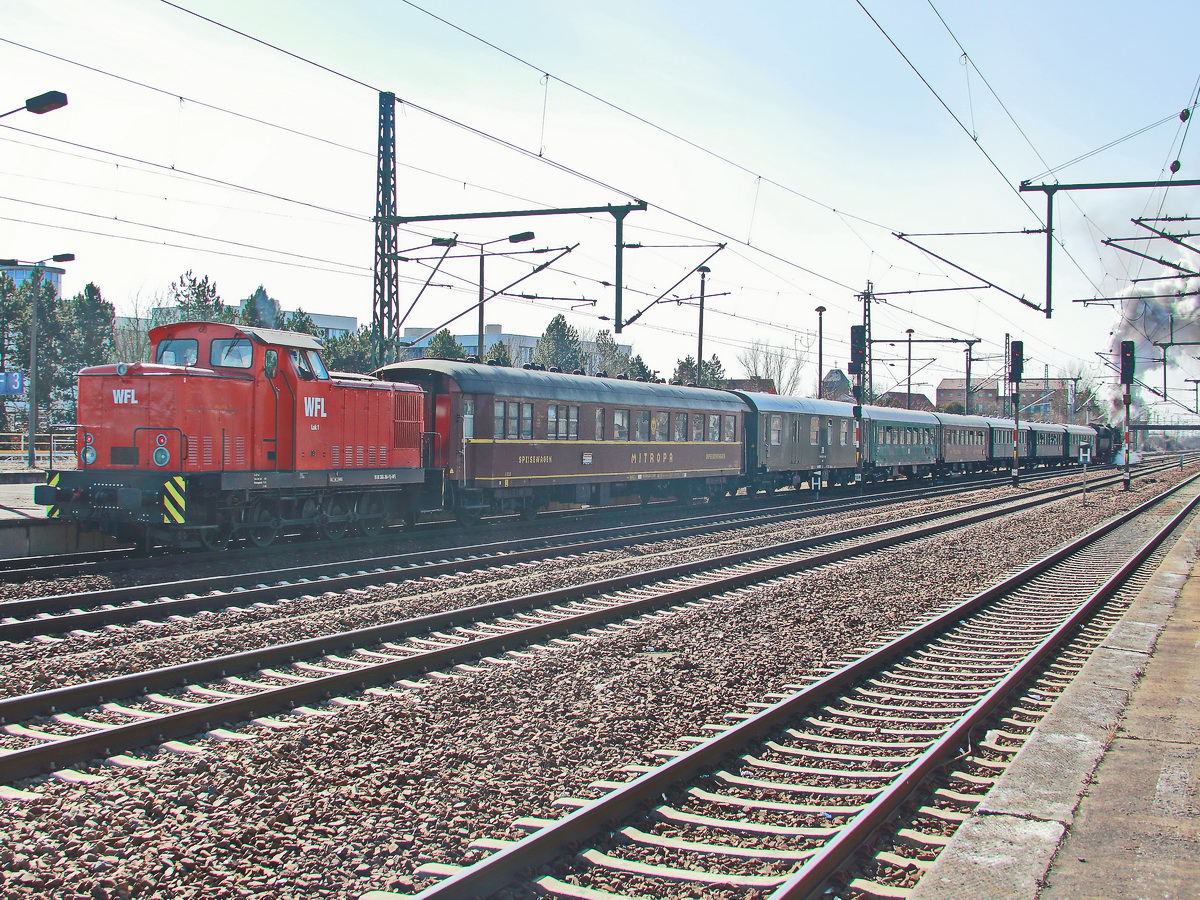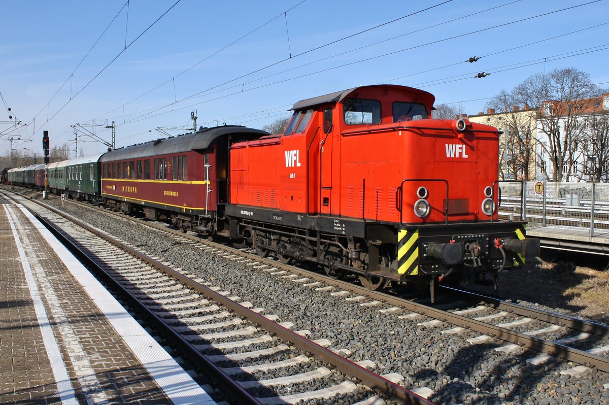 Hier die Schublok 345 286-9 der WFL für den Sonderzug der Dampflokfreunde Berlin e.V. am 18. März 2018 aus den Bahnhof Berlin Schönefeld Flughafen. Klaus-P. Dietrich