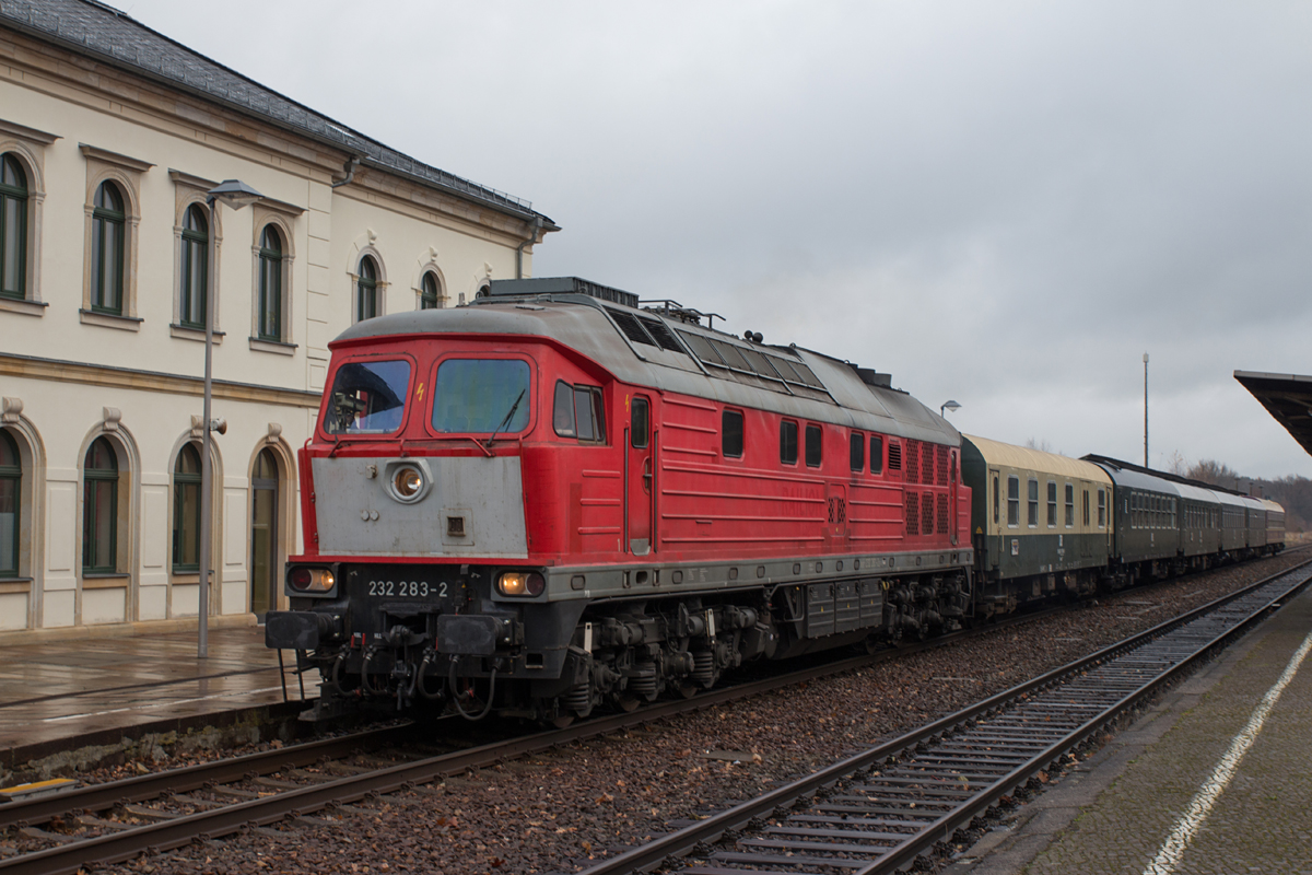 Am letzten Novemberwochenende 2016 sprang die WFL 232 283-2 für die 112 331-4 der OSEF im Sonderzugdienst ein. So ergab es sich, daß erstmals eine 232 die Strecke von Bad Schandau nach Sebnitz befuhr.