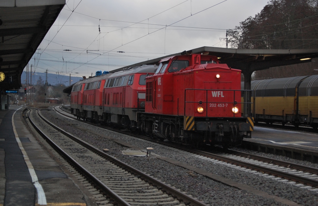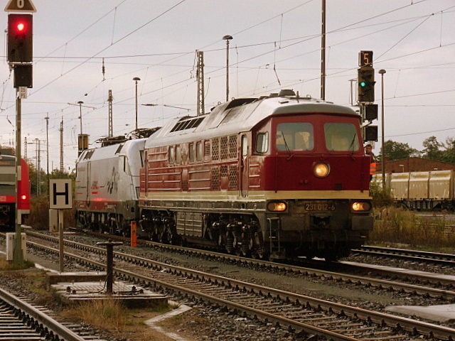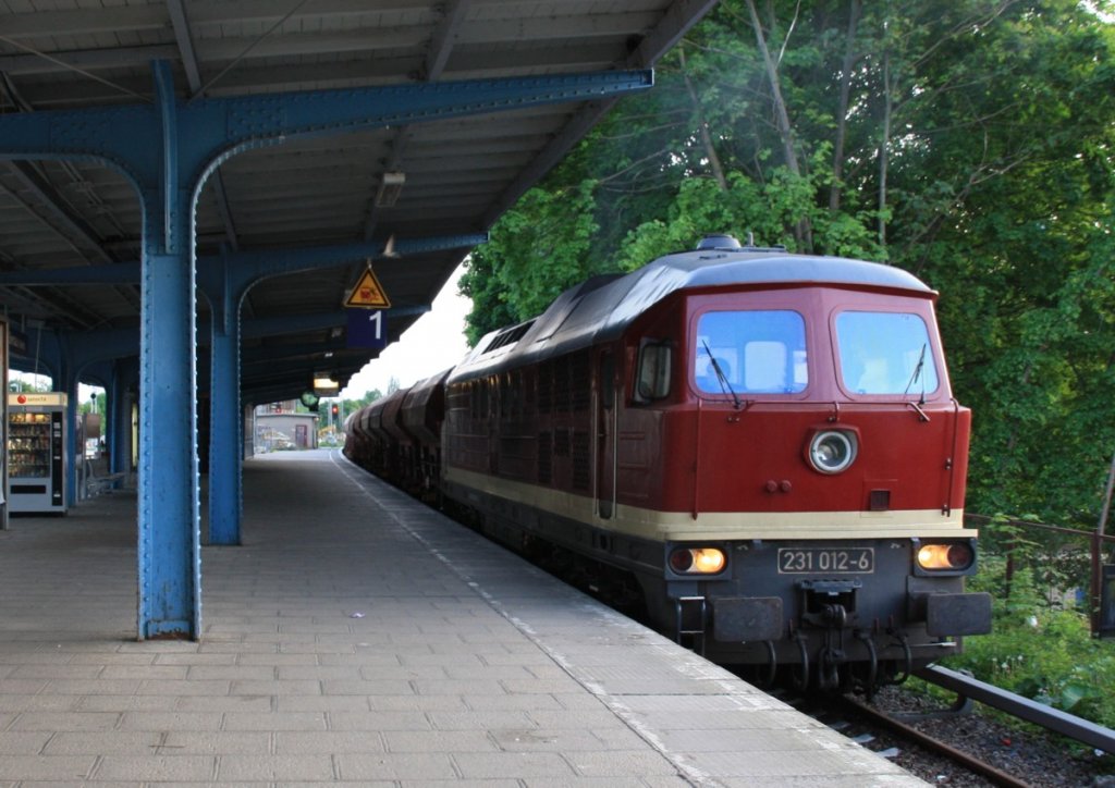 19.5.2012 Bernau bei Berlin. 231 012 von WFL am S-Bahnsteig mit Schotterwagen und Gleisbaumaschinen an der Spitze. Wenig später ging es zur Vollsperrung Buch - Karow wegen Auswechslung der Brücken über die A10 sowie Gleiserneuerung Gl. Kar - Bu. matthias manske