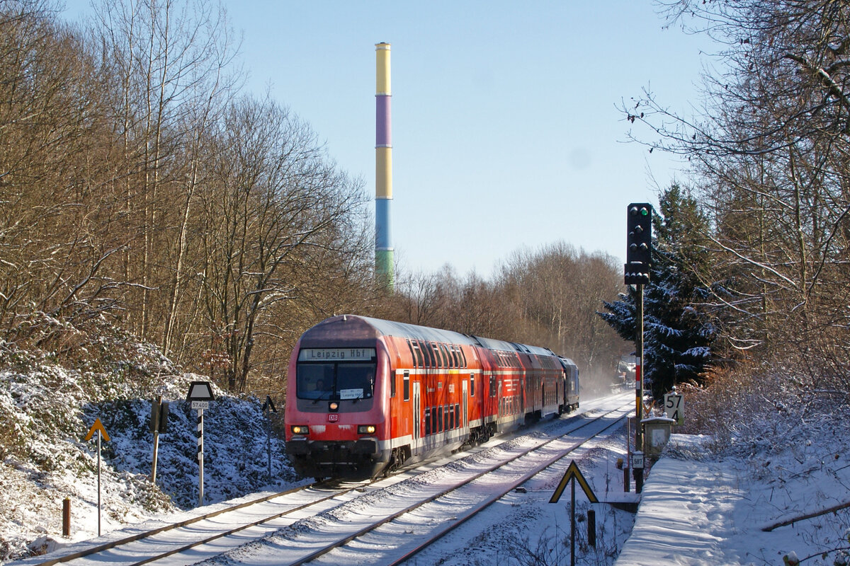 Hier zusehen ist der WFL-Ersatzzug geschoben von 223 015 auf dem RE 6 am 20.1.24 kurz vor dem Haltepunkt Chemnitz-Borna Richtung Geithain. saxony_spotter