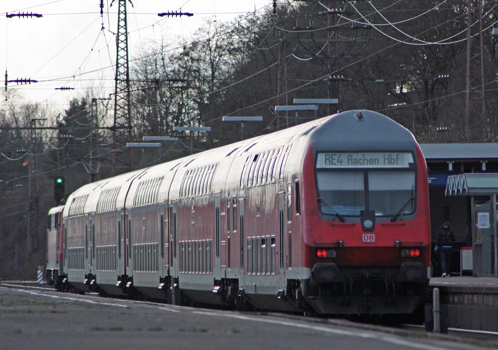 Hier die Sicht auf den DoSto Steuerwagen eines RE9 Parks der nach Gießen unterwegs war. Dieser fuhr gerade aus Düren heraus.