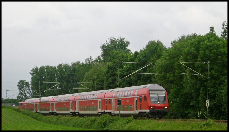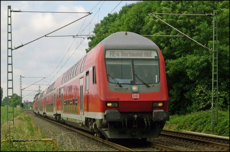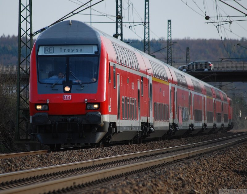 Der 10433 wie wir ihn nicht wollen, bis zum fahrplanwechsel noch mit 110er und silberlingen, nun im grauen Dosto alltag...hier an der ehem. Anrufschranke 11.4.2009 Marius Gerads