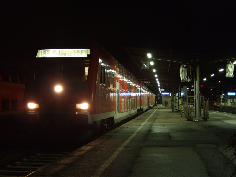 Erste Regionalbahn nach Koblenz Hbf wartet in Bingen Hbf am 06.12.08 auf die Weiterfahrt. Das vorletzte Wochende an dem die DB Regio die linke Rheinstrecke noch befahren hat Sascha Götz