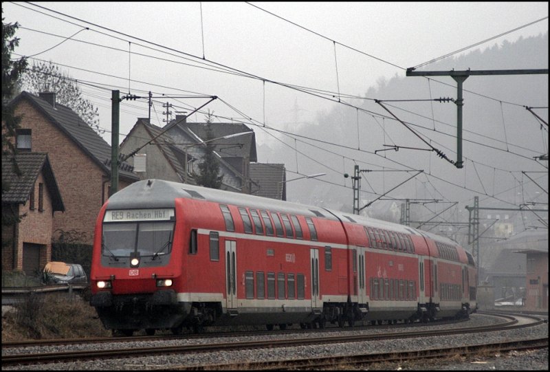 Steuerwagen vorraus erreicht wenige Minuten später der RE9 (RE 4862) "Rhein-SIEG-Express" den ehemaligen Bahnhof Brachbach.(02.01.2009)