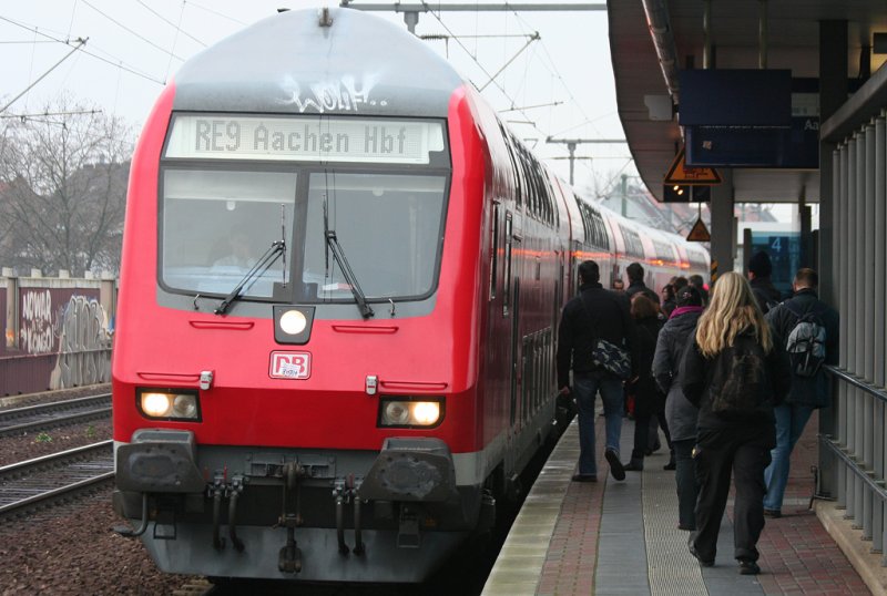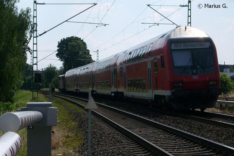 2x RE nach Dortmund. Rechts der außerplanmäßig in Geilenkirchen endene und links der erste RE nach Dortmund der wiedere aus Aachen durch kam. Dieser hat malwieder einen kurzschluss im FIS. Links Schublok 111 111 rechts 111 010 Marius Gerads