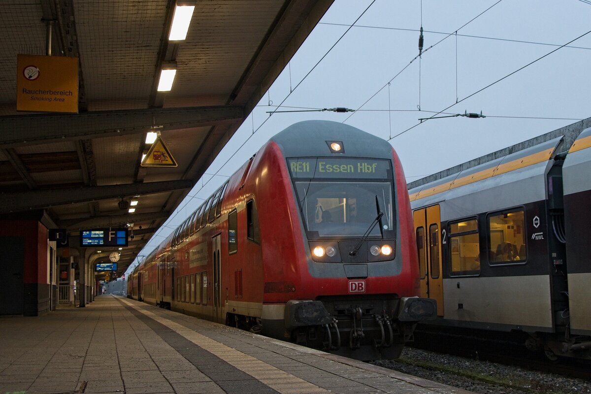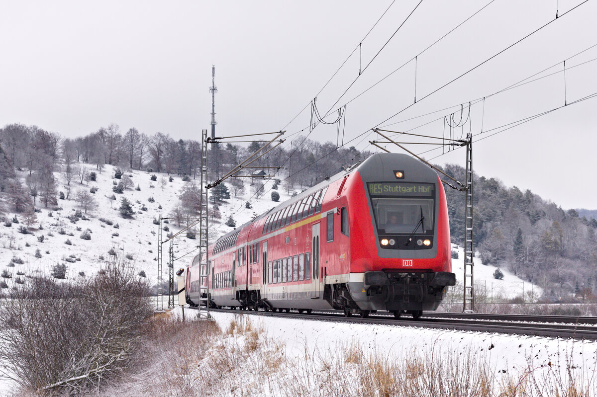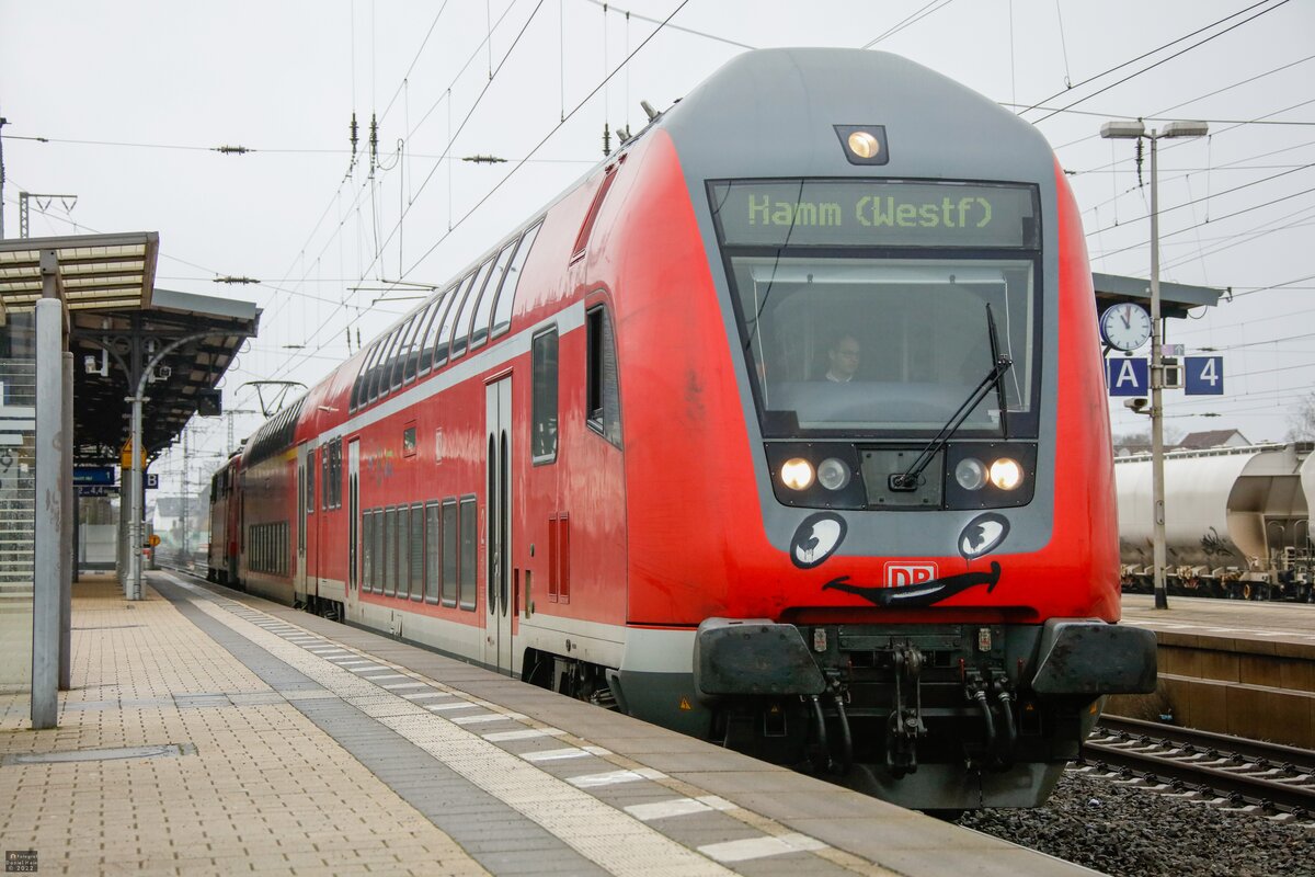 Eine Dosto-Garnitur steht in Berlin Hauptbahnhof Abfahrbereit um nach Berlin Charlottenburg zu fahren.