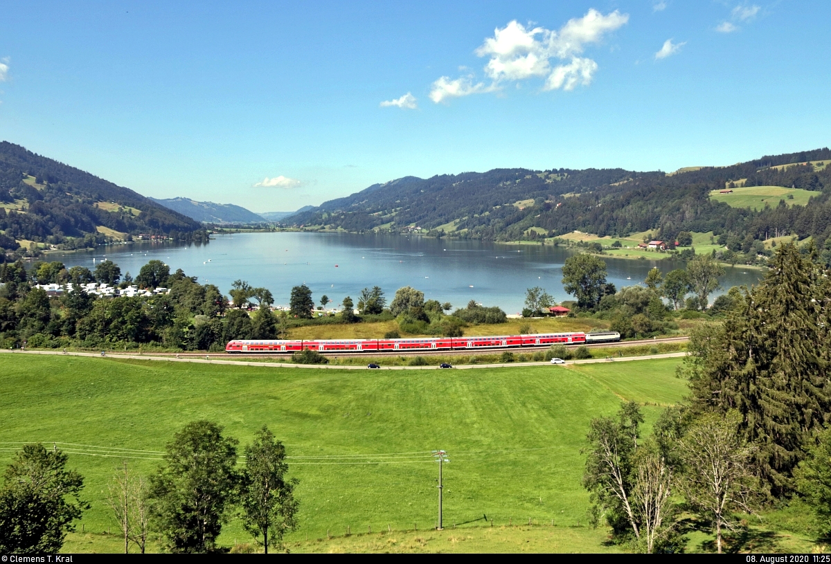 DABpbzfa mit Schublok 218 446-3 unterwegs bei Hub (Bühl am Alpsee) Richtung Immenstadt. Um welche Leistung es sich handelt, ist mir leider nicht bekannt.