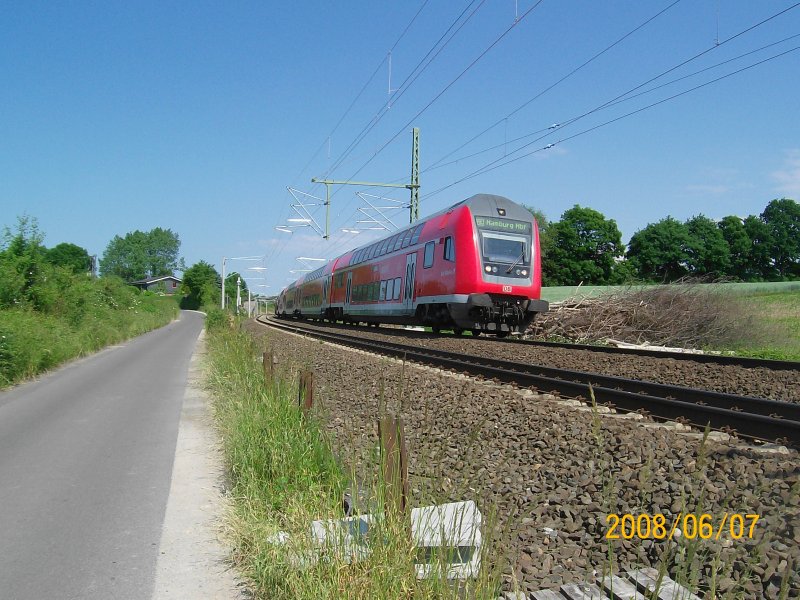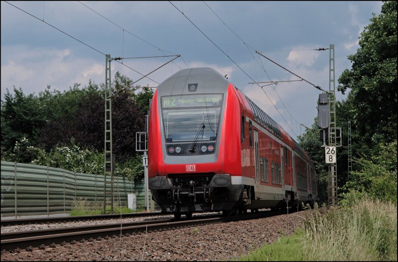 RE2 (RE 10219) "Rhein-Haard-EXPRESS", von Mönchengladbach Hbf nach Münster(Westf)Hbf, ist bei Haltern am See auf dem Weg zum Zielbahnhof. (15.06.2008) Florian Böttcher