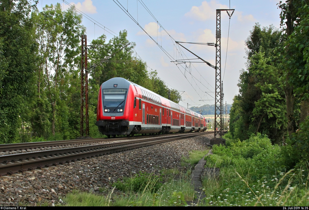 DABpbzfa mit Schublok 146 202-7 von DB Regio Baden-Württemberg als RB 19262 von Ulm Hbf nach Stuttgart Hbf erreicht den Bahnhof Geislingen(Steige) auf der Bahnstrecke Stuttgart–Ulm (Filstalbahn | KBS 750).