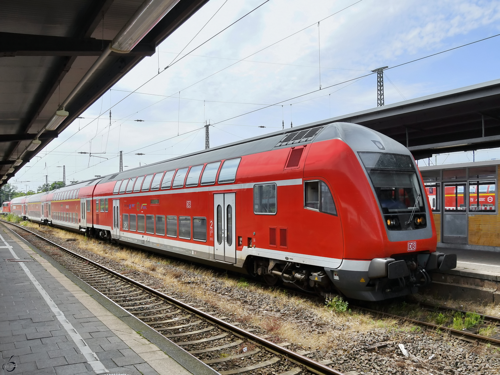 Diese von der Elektrolokomotive 146 117 gezogene Doppelstockeinheit ist hier Ende Juni 2024 bei der Ankunft am Hauptbahnhof in Wanne-Eickel zu sehen. Christian Bremer
