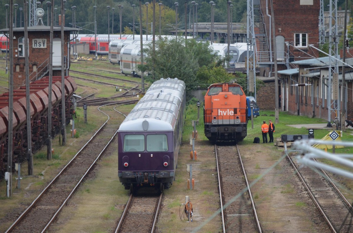 HKX Wagen ex ÖBB Triebzug 4010 & hvle V160.5 "203 143-3" und dahinter zusehen abgestellte IC Doppelstockwagen bei der RCL in Wustermark abgestellt 22.09.2015 Dieter Berger