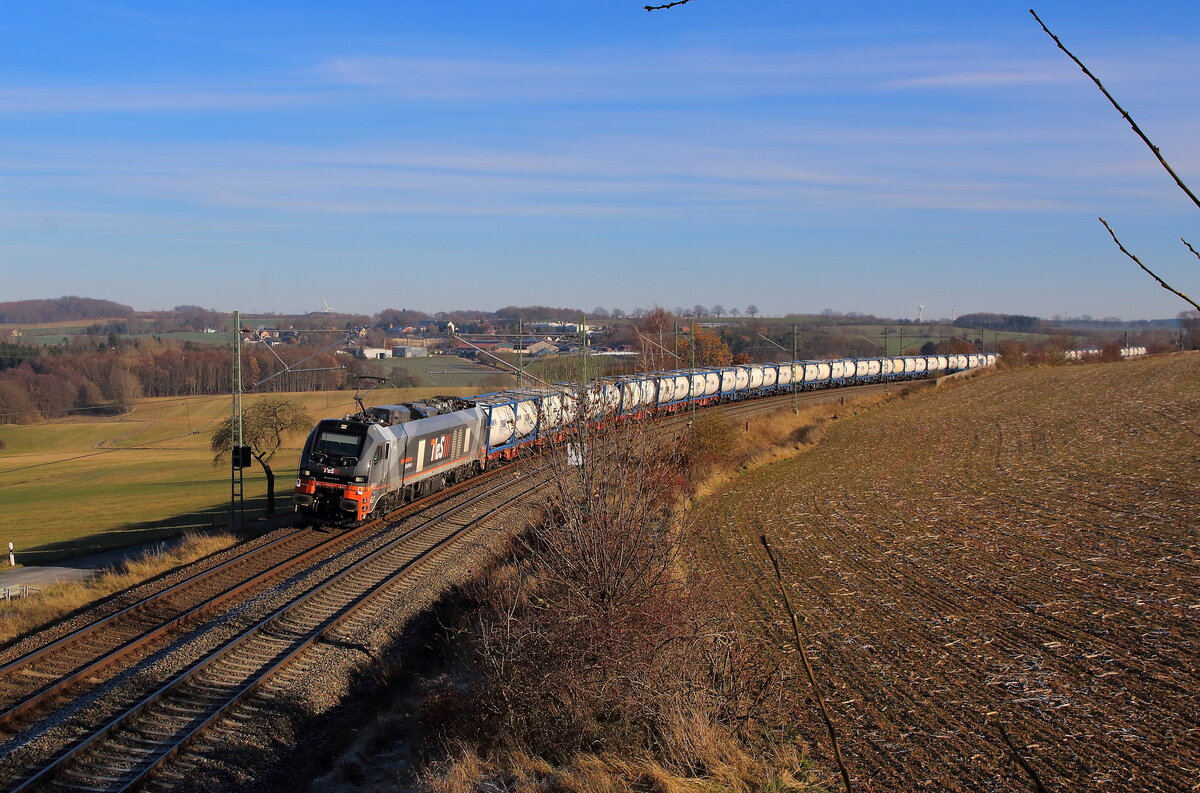 DGS 91085 von Ruhland nach Salzburg Liefering. Ein mit Leim beladenerzug. Gezogen wurder der Zug am 23.11.2025 von der Netzwerkbahn Sachsen 2159 251. Aufgenommen bei Rüppertsgrün/ Pöhl