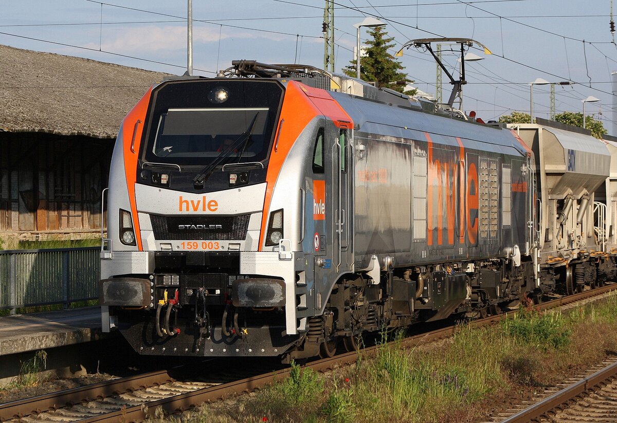 BR 159 006 D-HVLE mit einem Schotterzug bei der Durchfahrt Weddel (b.Braunschweig) Richtung Magdeburg/Wolfsburg. 9.August 2025