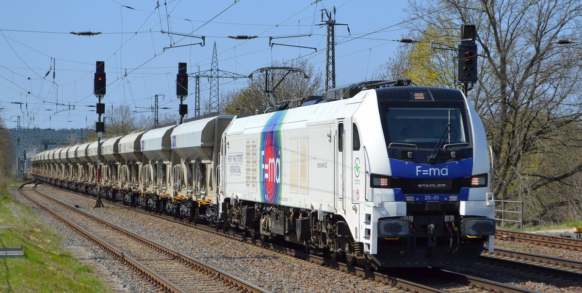 HHPI - Heavy Haul Power International GmbH mit "20-01" (NVR: "90 80 2159 201-3 D-RCM") mit Ganzzug Schüttgutwagen am 20.04.21 Bf. Saarmund. Lothar Stöckmann