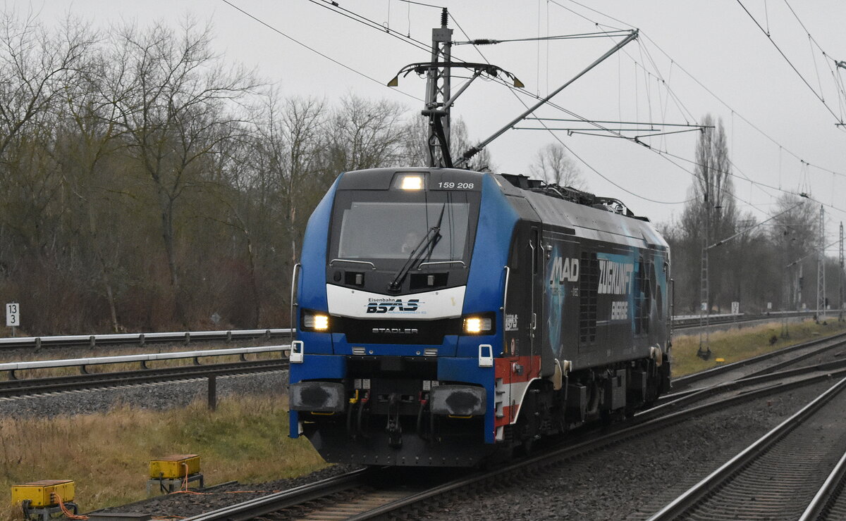 BSAS EisenbahnVerkehrs GmbH & Co. KG, Mülsen [D] mit der Eurodual Lok "159 208" [NVR-Nummer: 90 80 2159 208-8 D-ELP] am 16.01.25 Durchfahrt Bahnhof Berlin Hohenschönhausen. Lothar Stöckmann