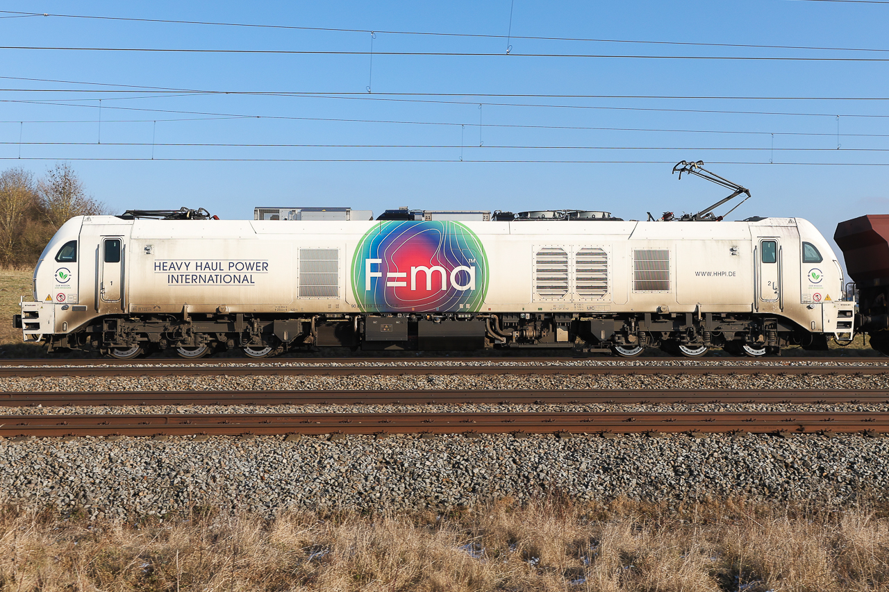 159 010 der HVLE kommt mit einem Güterzug voll Baumaterialien vorbei am Nuthetal in Richtung Genshagener Heide bei Ludwigsfelde. 01.03.2022 Jens Kublank