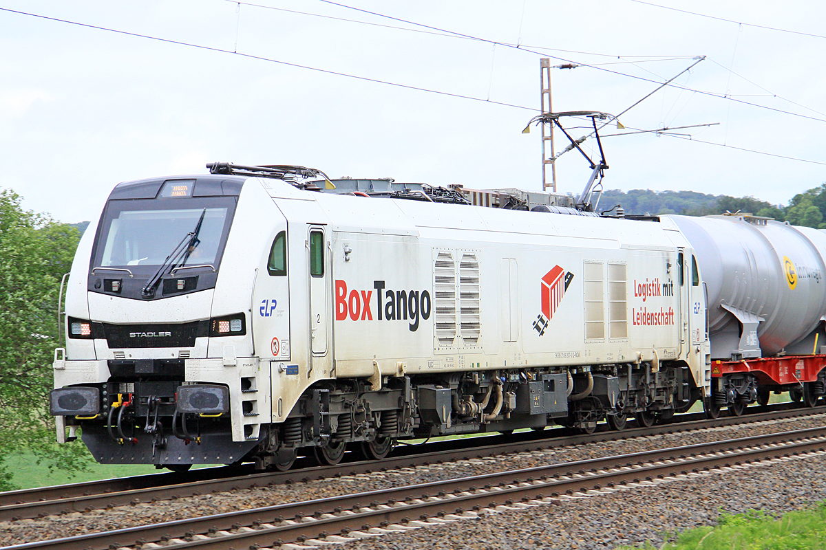 Blaue Lok zur "blauen Stunde": 159 229-4 EVB "Kratos" kam am 27. Mai 2022 um 6:03 Uhr am "Fotobaum" bei Retzbach (Maintal) mit unbeladenen Containertragwagen südwärts angerollt. Matthias Kümmel