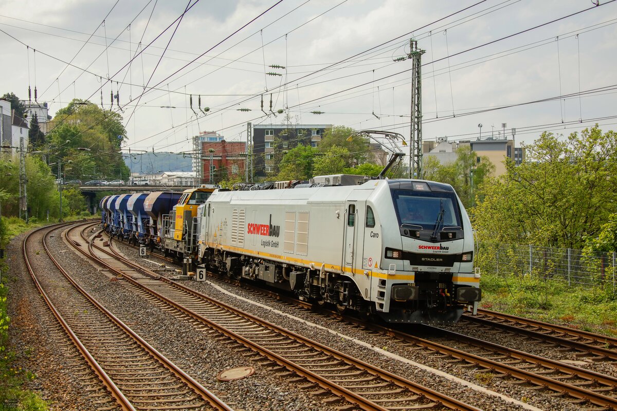 Schweerbaus "Caro", oder ganz nüchtern 159 236-9 (Stadler Eurodual), hat sich als Tfzf Richtung Sangerhausen hinter die S7 eingereiht und muss ihr in Teutschenthal noch etwas Vorsprung geben.