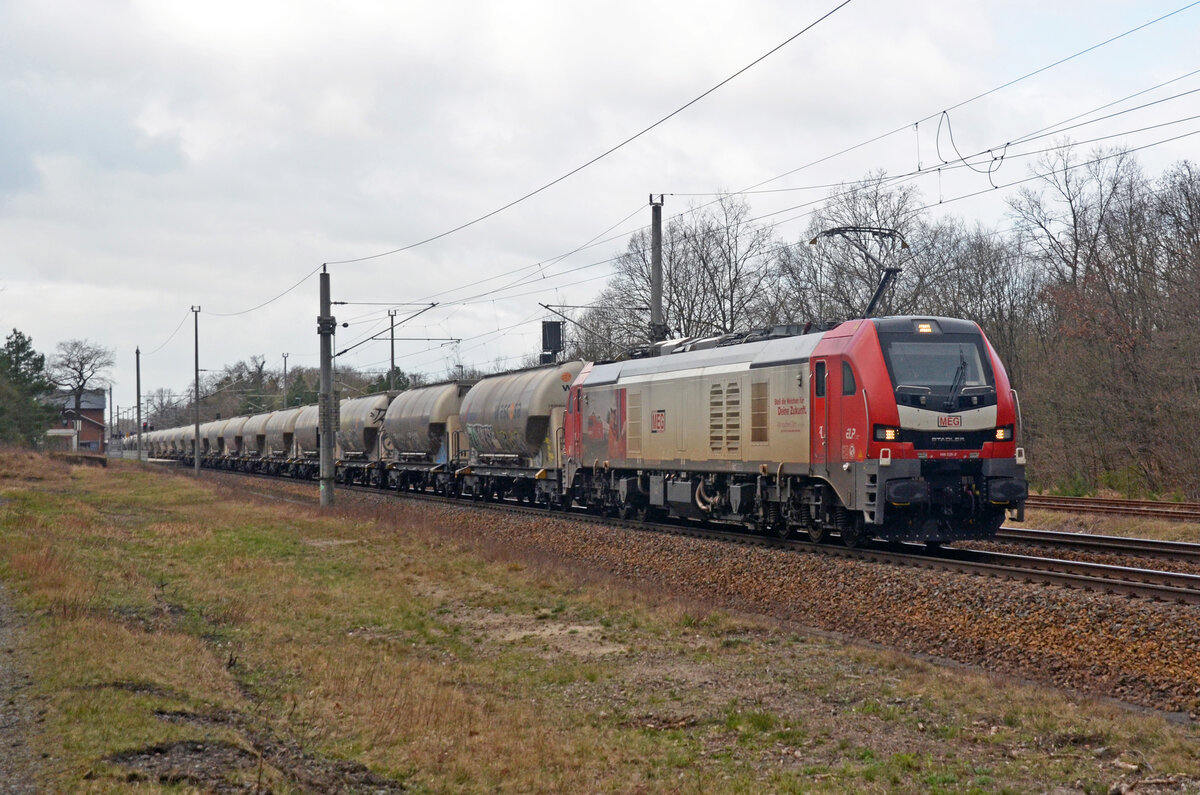 LWC 159 219, unterwegs für die HSL, mit dem DGS 69461 nach Großkorbetha, am 19.05.2021 in Emleben. Standort ist auf der Wiese hinter einem Prellbock. Frank Thomas