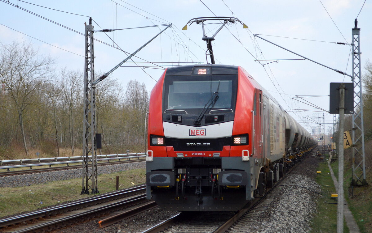 Eine unbekannte Stadler Eurodual fuhr am 13.03.2022 bei herrlichem Frühlingswetter mit einem Kesselwagenzug durch Unterhaun in Richtung Süden. Michael Brunsch