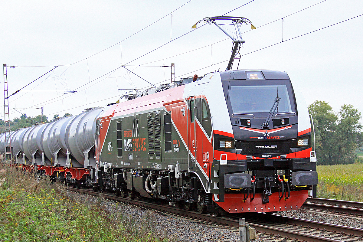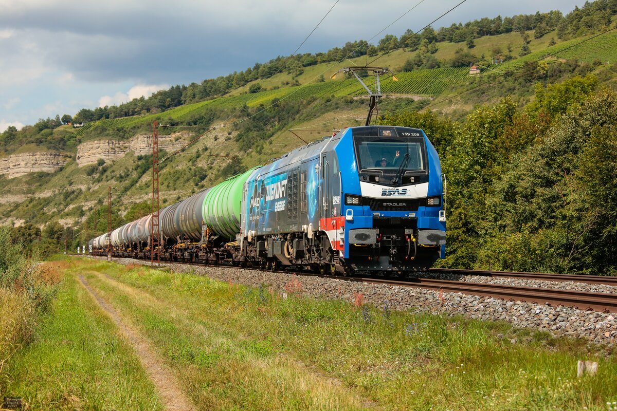 BSAS EisenbahnVerkehrs GmbH & Co. KG, Mölsen [D] mit "159 208" [NVR-Nummer: 90 80 2159 208-8 D-RCM] und diesem relativ neuen wunderschön gestalteten firmeneigenen Kesselwagen in einem Ganzug am 23.09.21 Durchfahrt Bf. Golm (Potsdam). Lothar Stöckmann