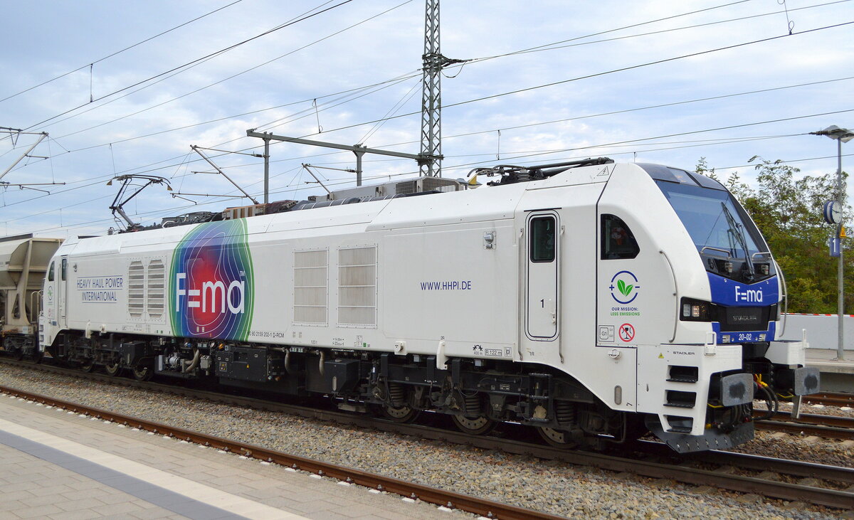 HHPI - Heavy Haul Power International GmbH, Erfurt [D] mit "20-02" [NVR-Nummer: 90 80 2159 202-1 D-RCM] und Ganzzug Schüttgutwagen am 12.10.21 Durchfahrt Bf. Golm (Potsdam). Lothar Stöckmann