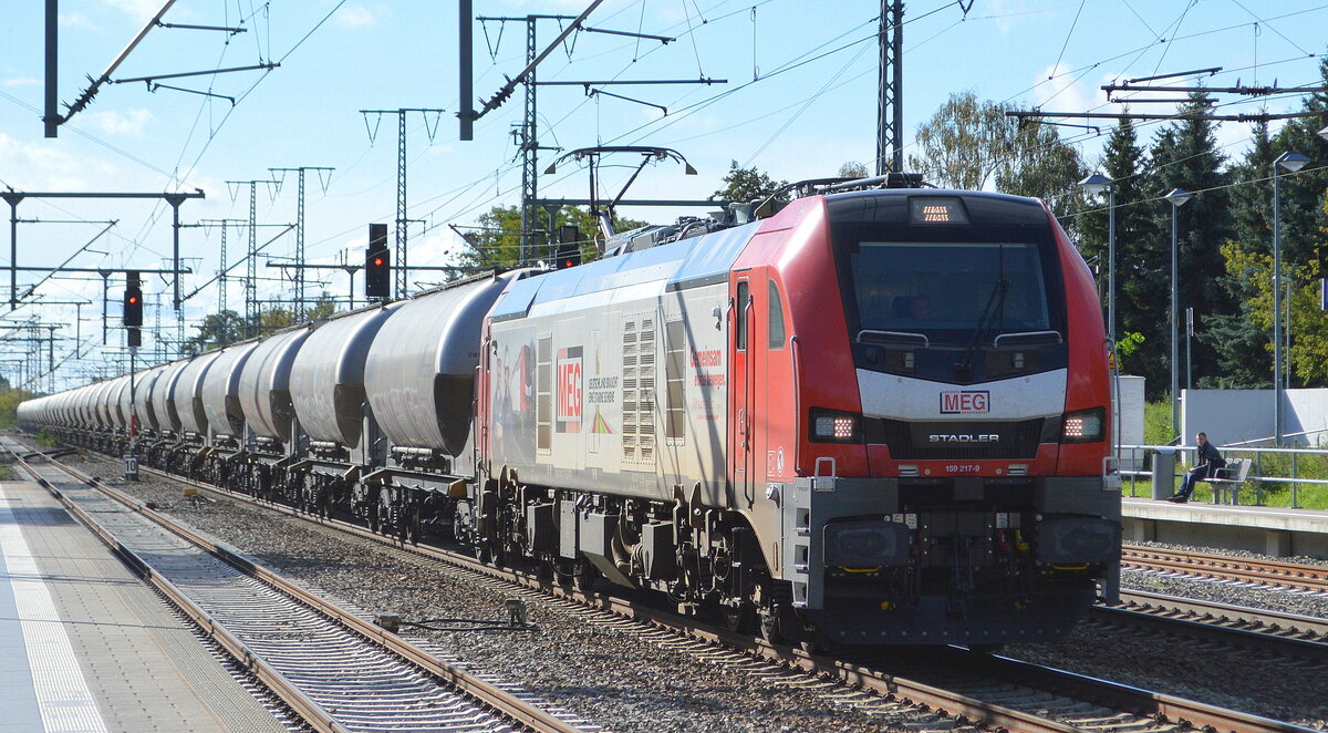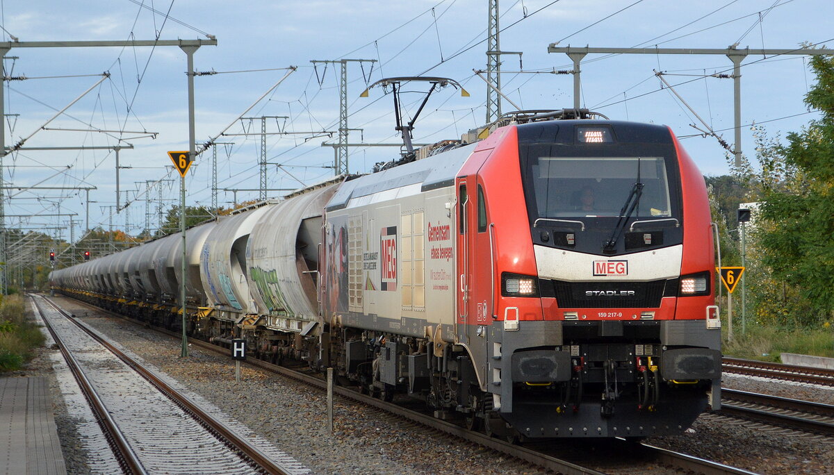 Getreidezug mit 159 221-1 "Nina" (Stadler Eurodual) unterwegs in Braschwitz Richtung Köthen.