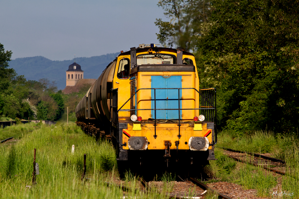 Ein idyllischer Morgen beginnt in dem verschlafenen Dörfchen Volgelsheim, direkt hinter der Grenze zu Deutschland. Doch mit der Ruhe ist es schnell vorbei, als die BB2000 (gebaut 1980 von CFD Industries) des Port Rhinau, mit einem unverwechselbar guten Sound einen langen Kesselzug aus dem Volgelsheimer Bahnhof beschleunigt.