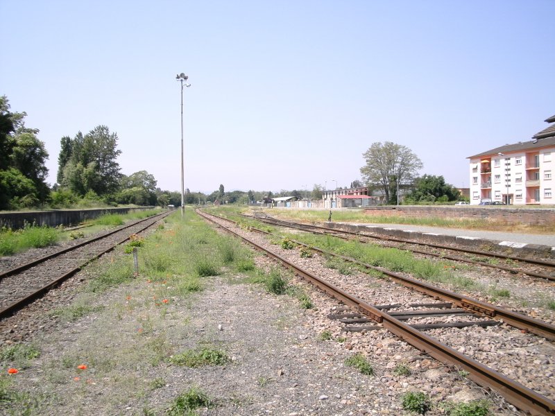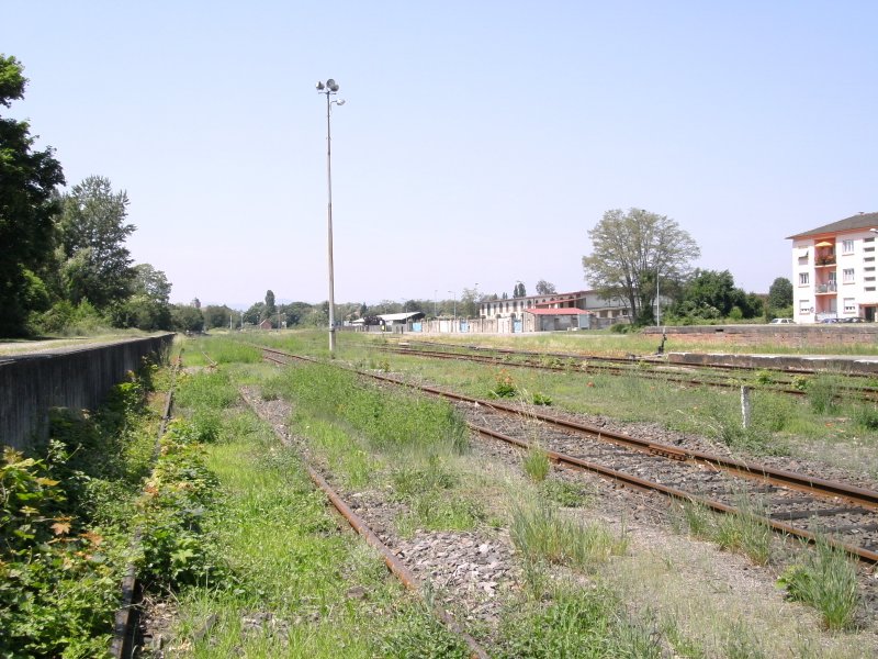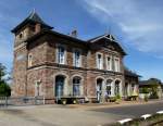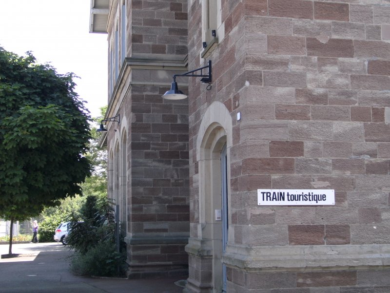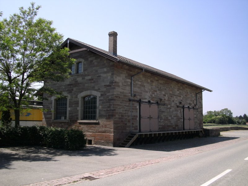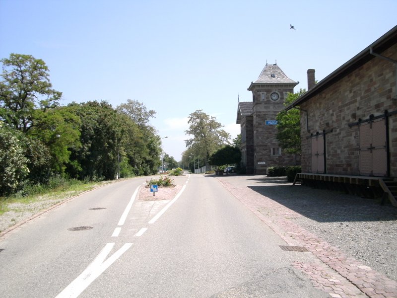 Bahnhof Volgelsheim im Elsaß, wurde 1880 erbaut im Wilhelminischen Stil, liegt an der 1878 in Betrieb genommenen Strecke zwischen Colmar und Freiburg/Breisgau, seit 1993 Eigentum der Gemeinde und Ausgangspunkt für die Museumsbahn "Ried-Express", Mai 2013 rainer ullrich
