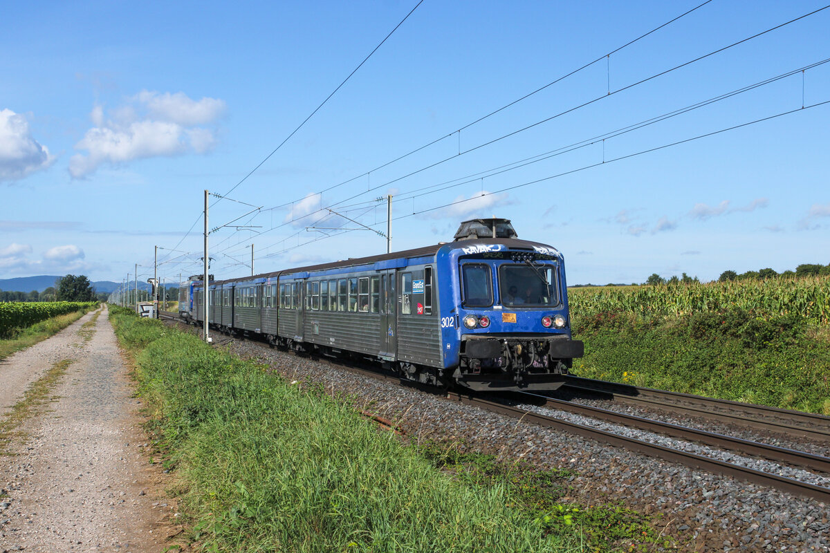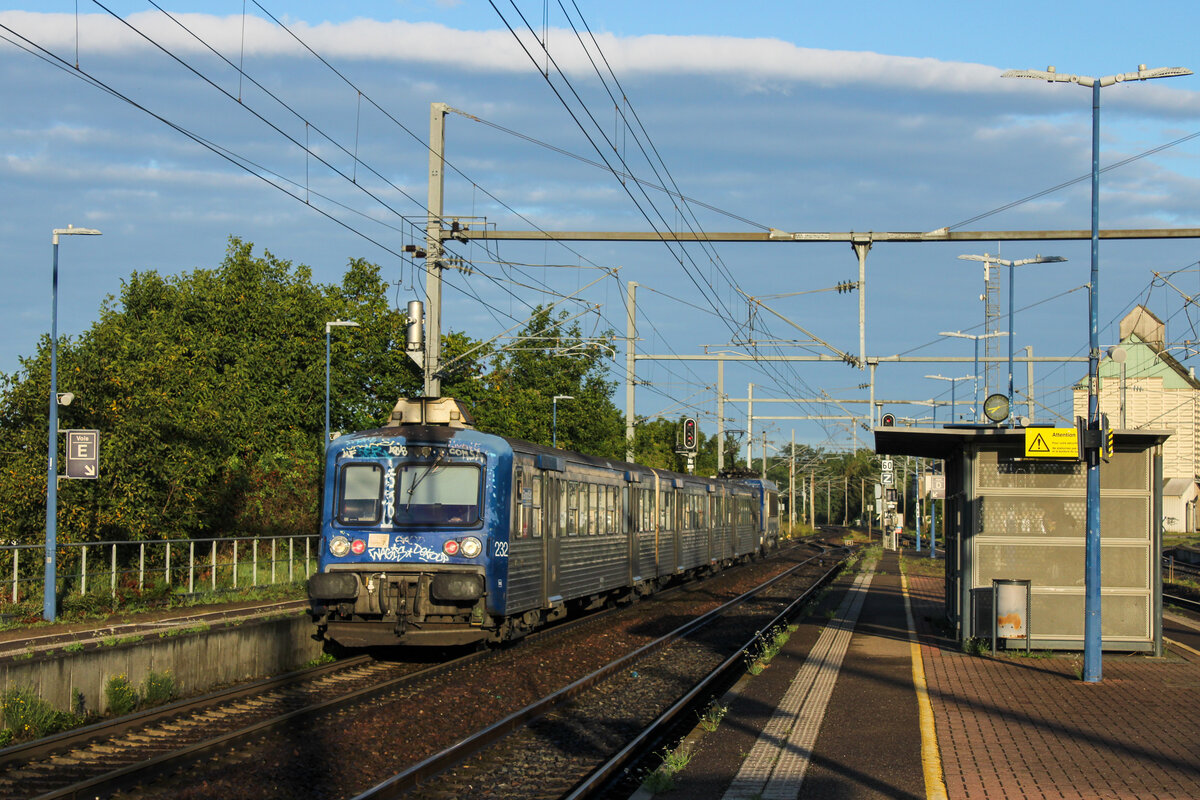 Morgendlicher Pendlerverkehr: Hoch ausgelastet sind die morgendlichen Züge zwischen Saverne und Selestat. Am Morgen des 29.08.2025 fährt RRR-232, geschoben von BB 22298, als TER 32009 in den Bahnhof Mommenheim ein. Leonhard Groß