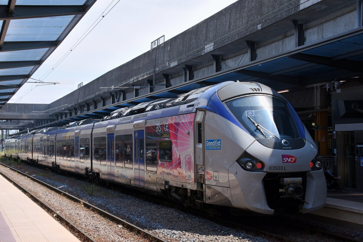Der SNCF "fluo" GRAND EST X 76796 verlässt als TER 831722 Molsheim und zeigt sich unter der typischen relativ massigen Signalbrücke des Bahnhofs. Der Zug ist auf der Fahrt von Strasbourg nach Barr. Auf den von Strasbourg ausgehenden Strecken via Molsheim wird ein für Frankreich untypischer starker Reisezugverkehr angeboten, so dass zwischen Molsheim und Strasbourg je nach Tageszeiten bis zu sechs Zugspaare pro Stunde verkehren, und kommt somit schon fast an den Léman Express heran, wobei die Betriebsführung mit den Dieseltriebwagen (tanken) sich in Strasbourg recht aufwendig gestaltet.