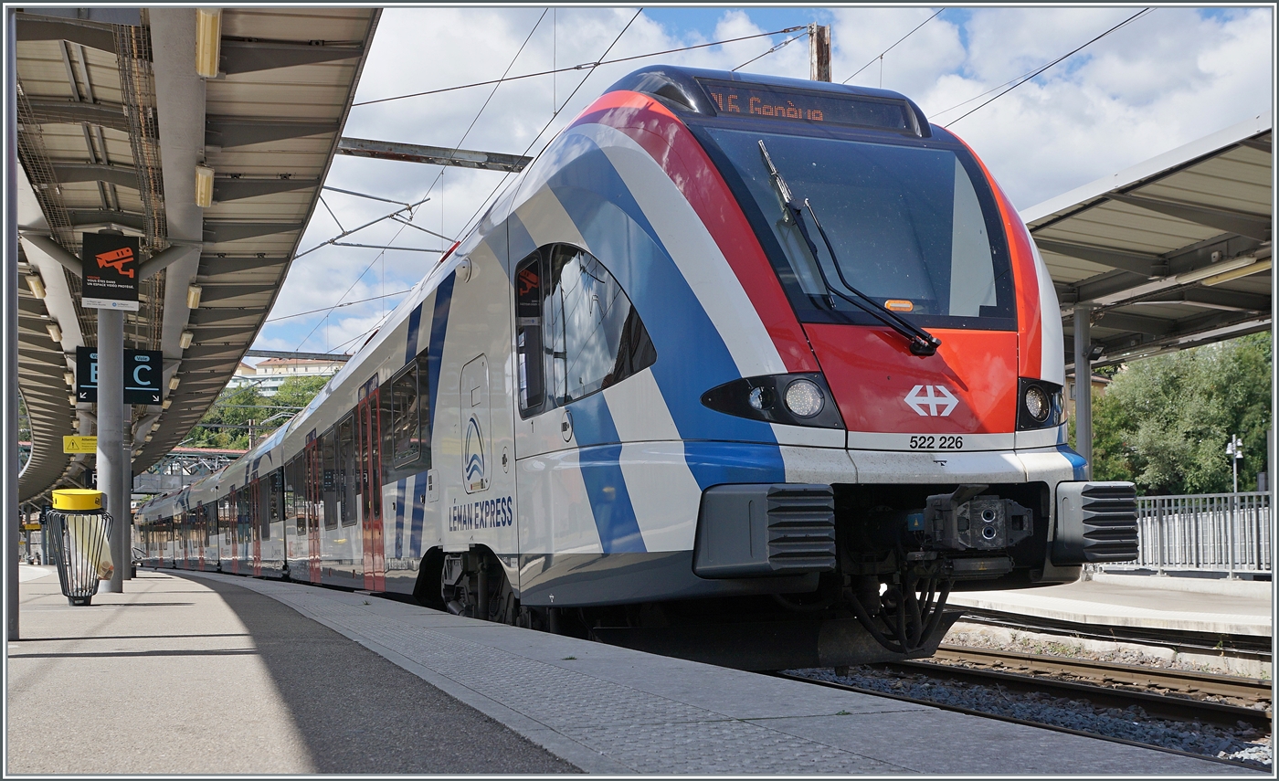 Der SBB LEX RABe 522 226 hat als RL6 96742 Bellegard-sur-Valseriene erreicht und wird als RL6 nach Genève zurückfahren. 26. August 2024