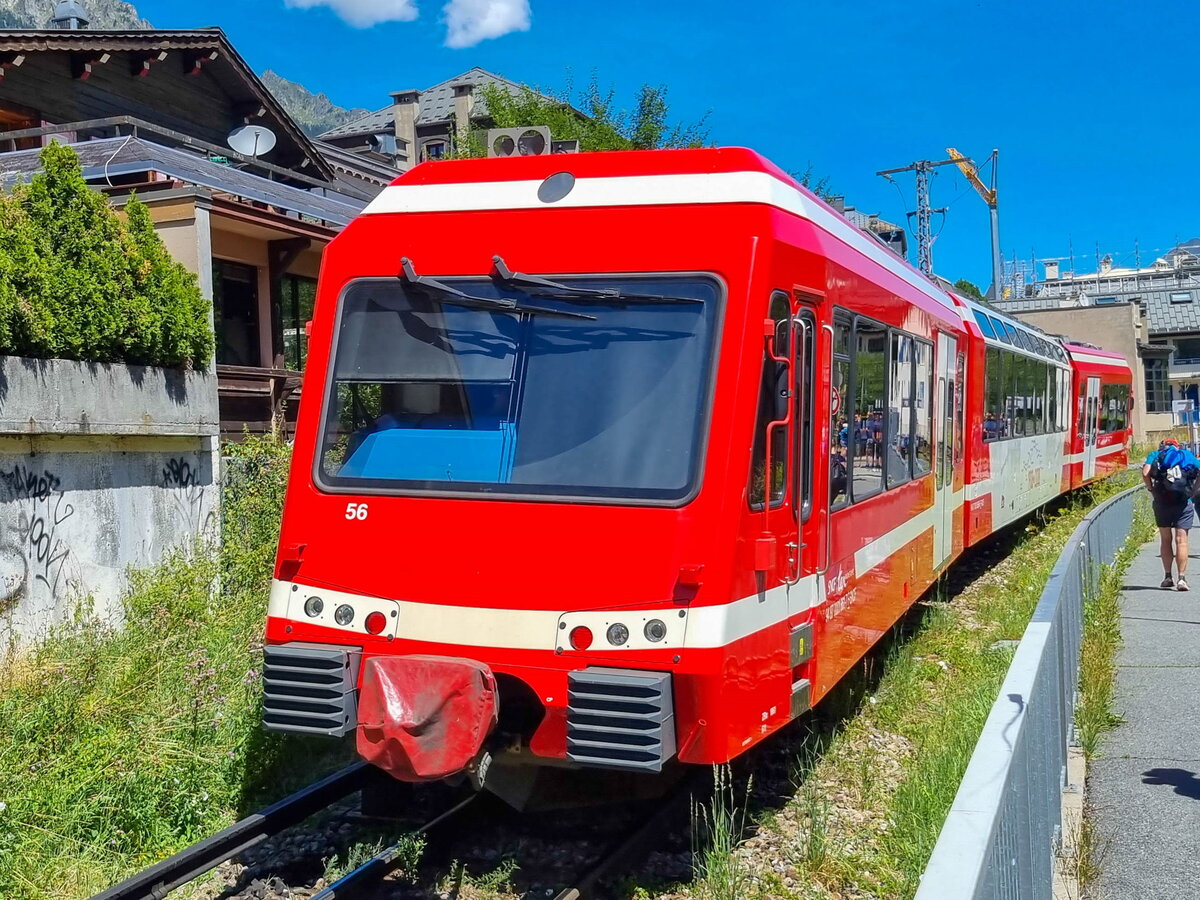 Im Hintergrund ist wage der Bahnhof von Vallorcine und ein TMR Zug zu erkennen. Interessanterweise fährt die SNCF in der Hautsaison im Halbstundentakt, während die TMR Züge ganzjährig im Stundentakt verkehren.