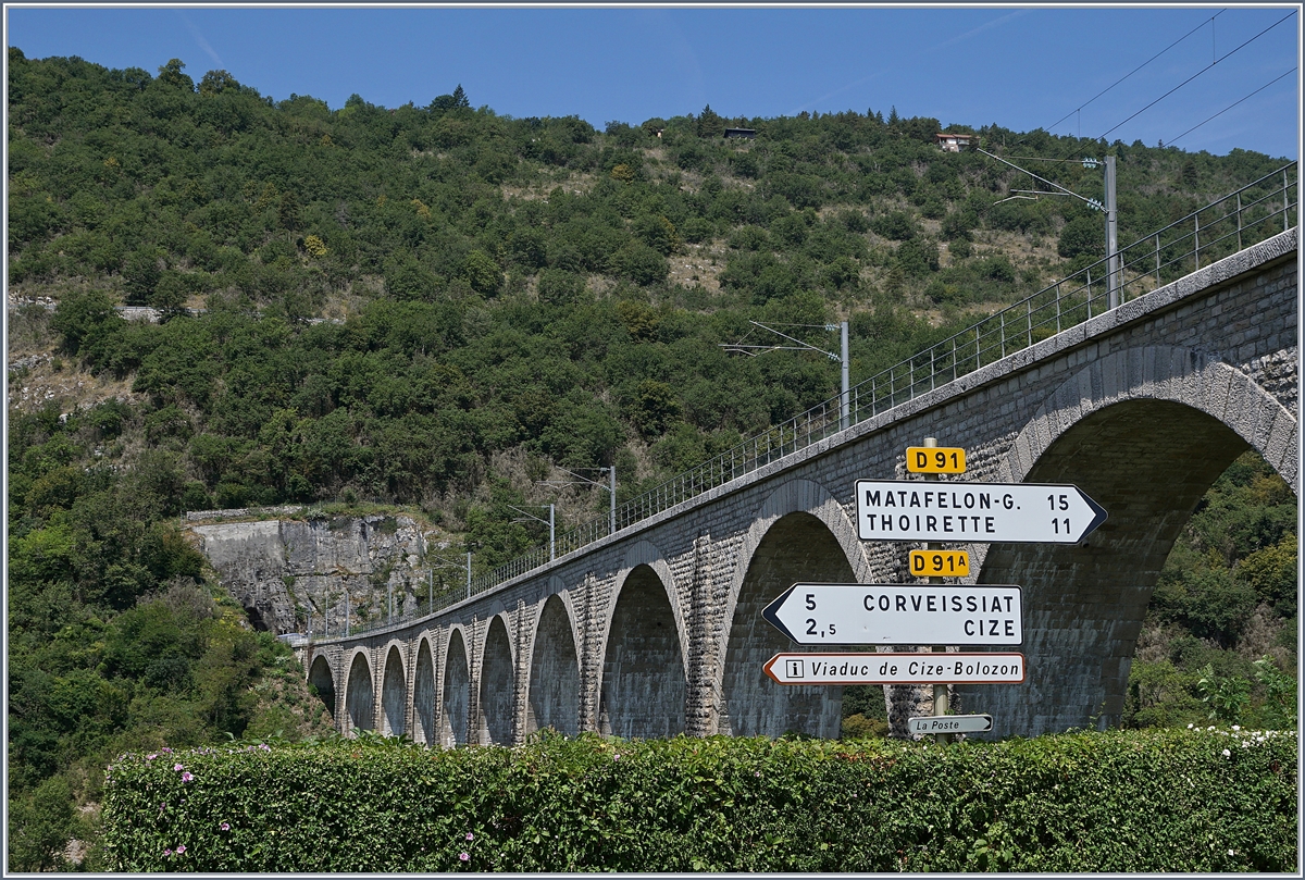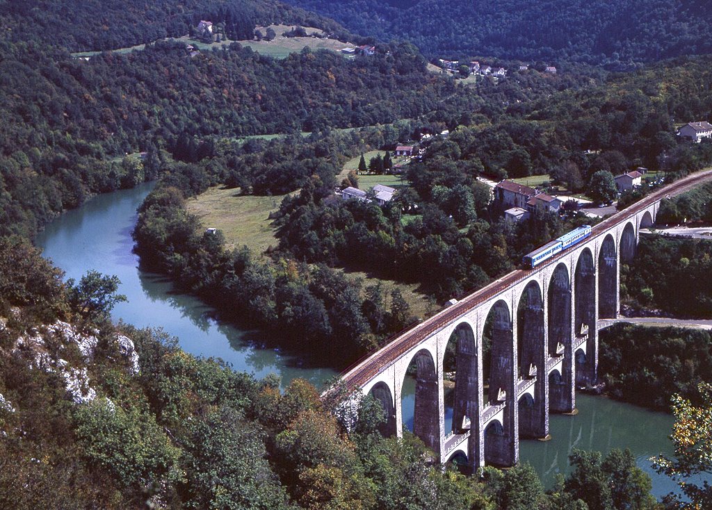 Der wunderschöne Cize-Bolozon Viadukt der Strecken Genève - Paris ist nicht weit von der Schweiz entfernt, jedoch durch die quer zum dazu verlaufende und teilweise recht hohen Juraketten gar nicht so einfach zu erreichen.