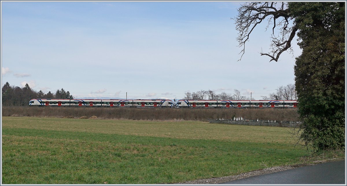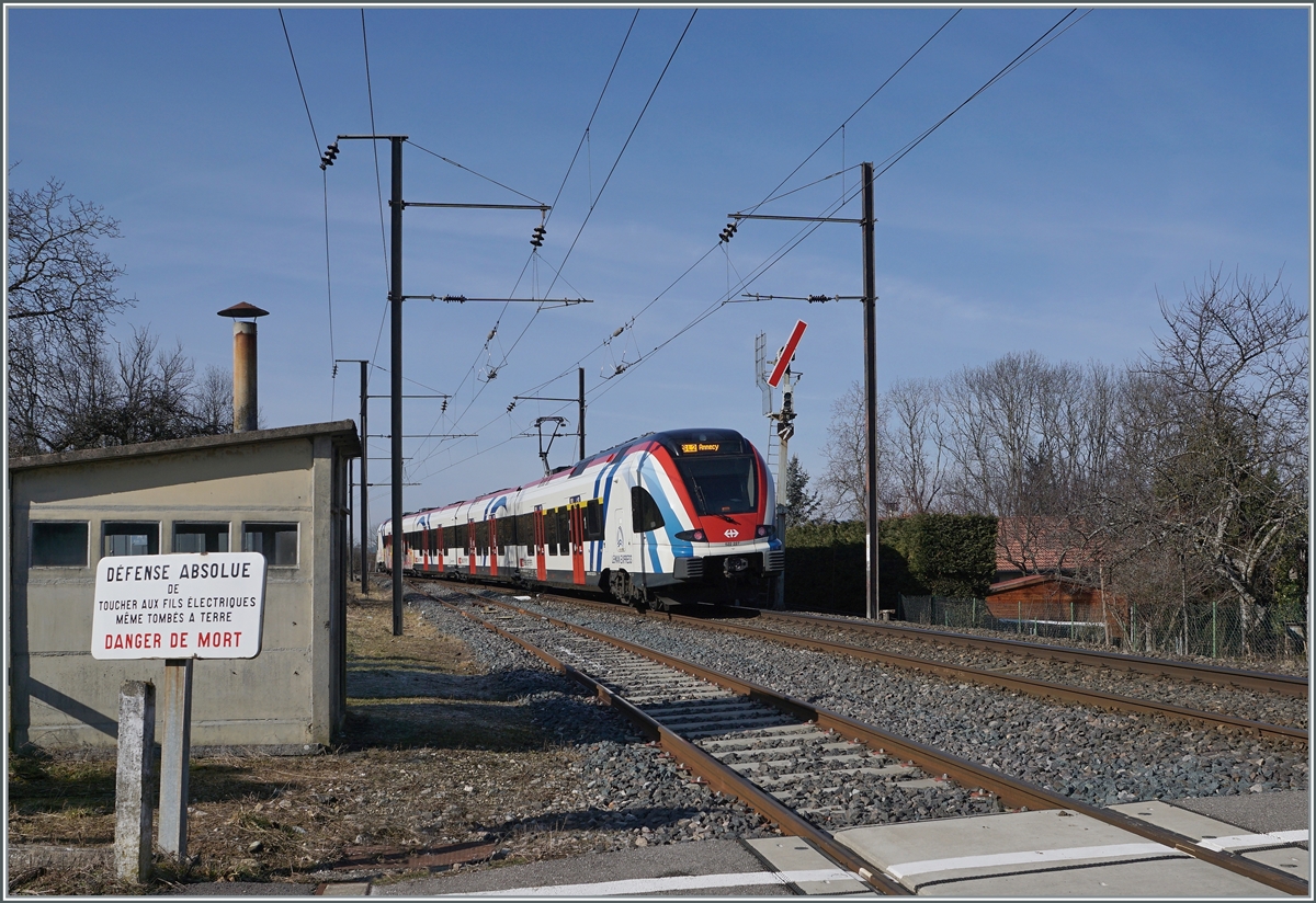 Die Linie SL2 von Coppet nach Annecy wird im Stundentakt bedient, im Bild zeigt sich der SNCF Coradia Polyvalent régional tricourant Z 31005 bei der Abfahrt in Groisy Thorens la Caille. Auch hier zeigt der eingesetzte Zug die Ausnahme, auf der SL2 kommen in der Regel SBB LEX RABe 522 zum Einsatz. TER Verbindungne St-Gervais - La Roche sur Foron - Annecy verstärken in der Hautpverkehrszeit das Angebot zusätzlich.