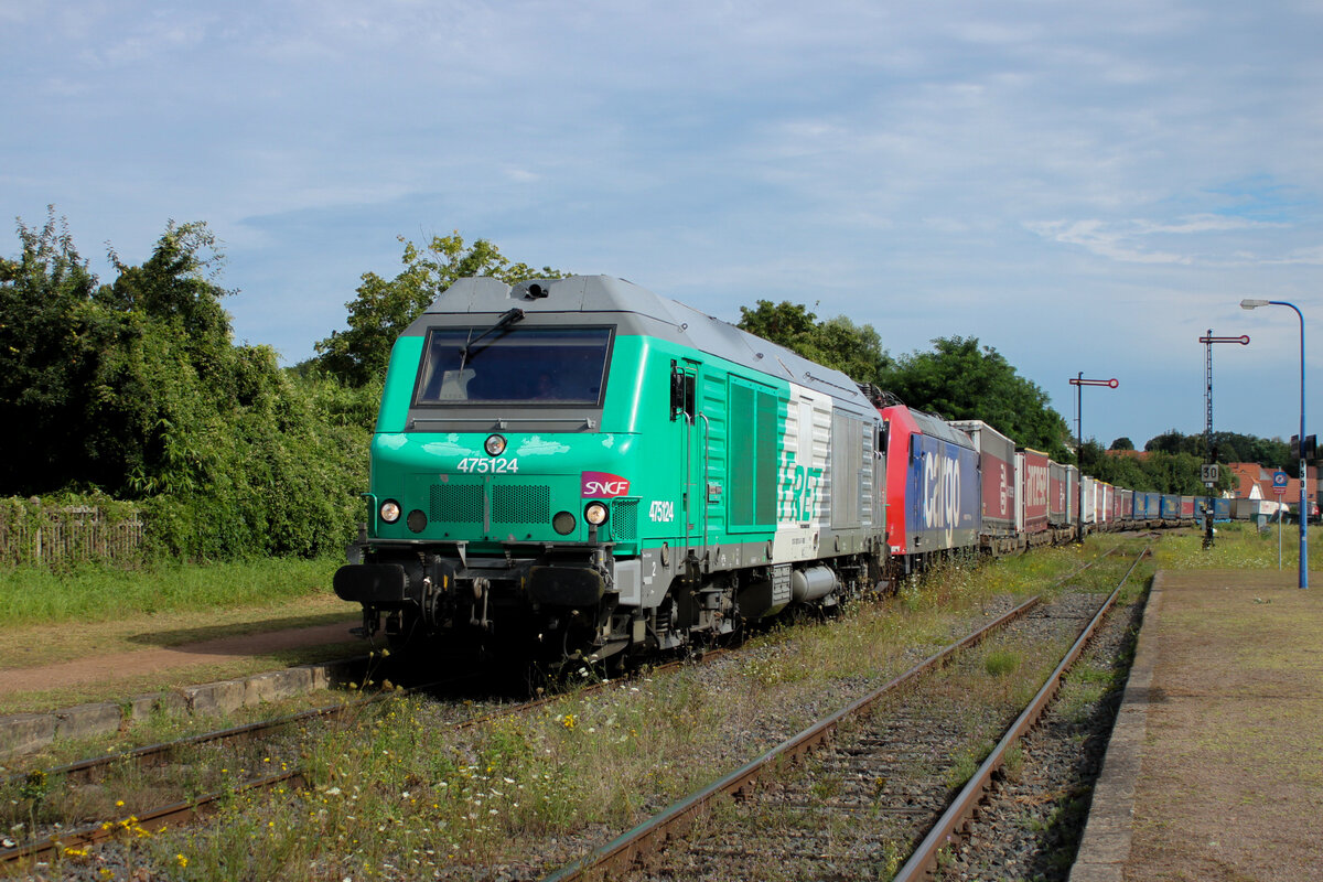 Gambsheim - 24. August 2024 : Rheintalbahn Umleiter vom 9. bis 31. August 2024. Die BB 75124 zieht einen KLV von Wörth nach Kehl. Hinten der Lok ist die SBB 482 005. Gilles LENHARD