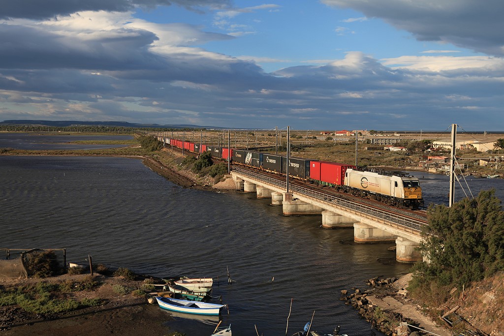BB 8216 und BB 8229 passieren die Ile St.Lucie im Etang de Berre und erreichen Port la Nouvelle, 03.09.1998.